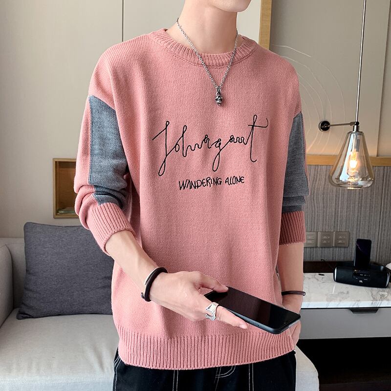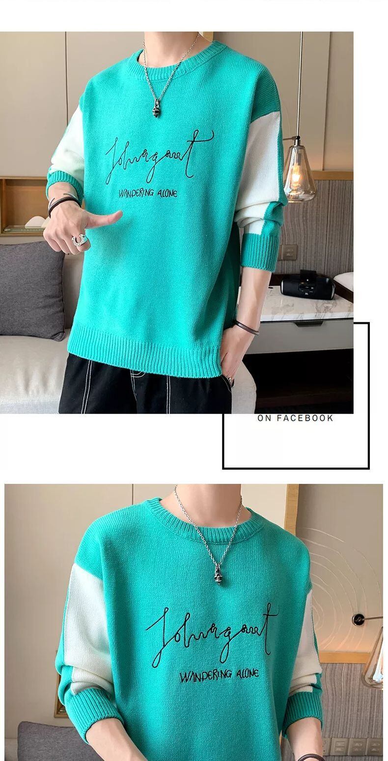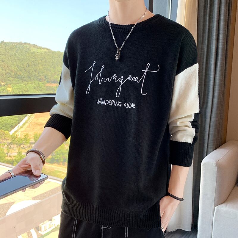 2022 new men's sweaters spring and autumn Hong Kong style youth students loose all-match round neck plus velvet sweater sweater スプリング 春物 オータム 秋物 Oネック doushi26986711259