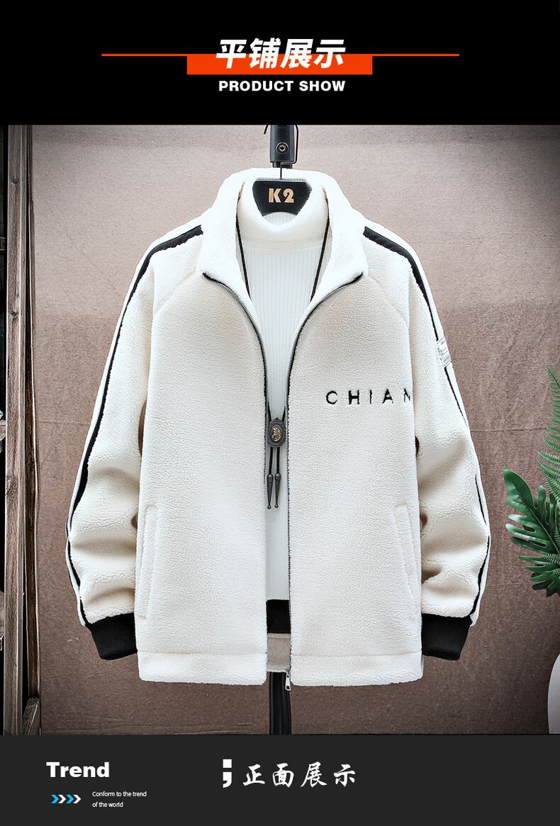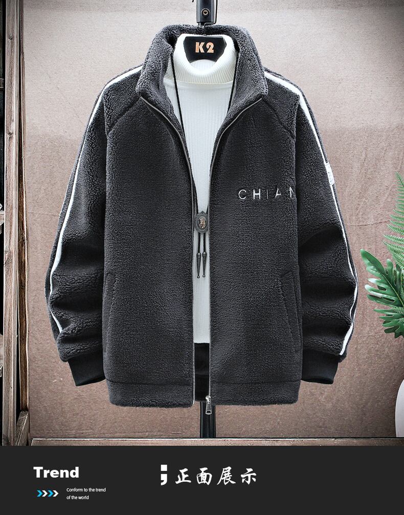 Fleece Jacket Men's Autumn Stand Collar Jacket Tide Teen Trend Wild Lamb Plush Autumn Dress オータム 秋物 doushi17337030532