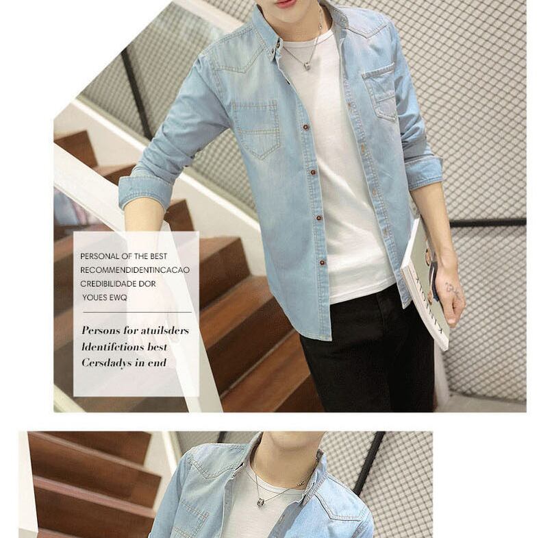 Denim shirt men's autumn long-sleeved shirt version trendy handsome men's jacket 2022 new tooling inch shirt ロング オータム 秋物 doushi87062242799