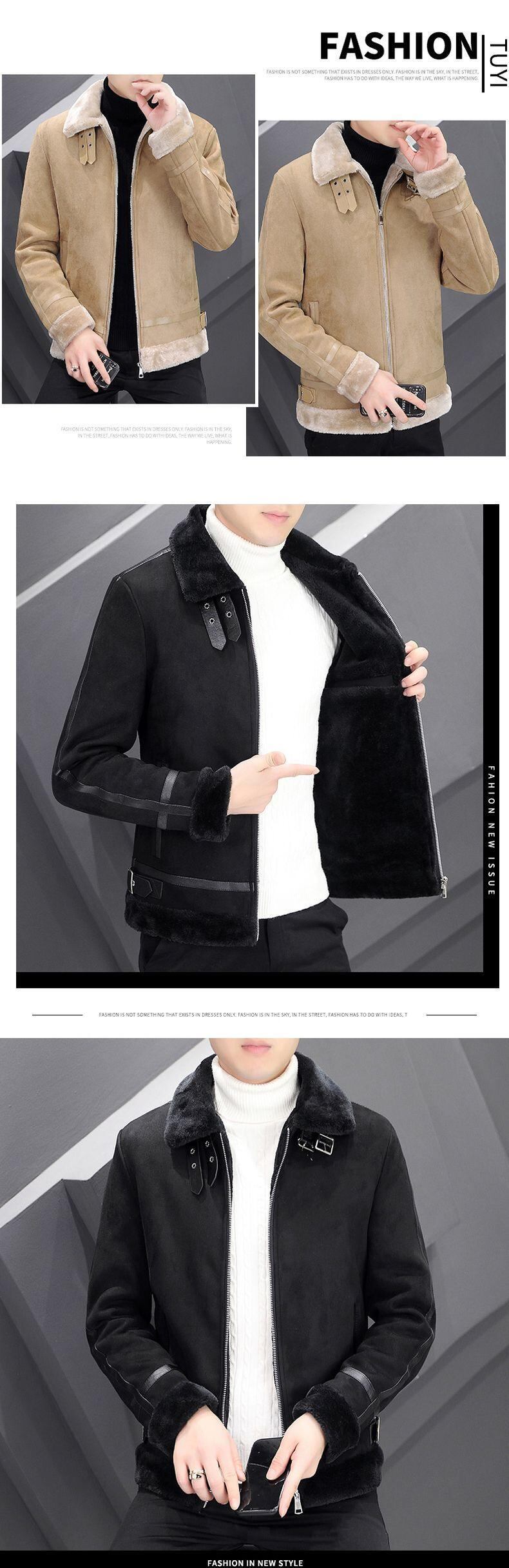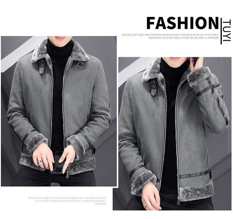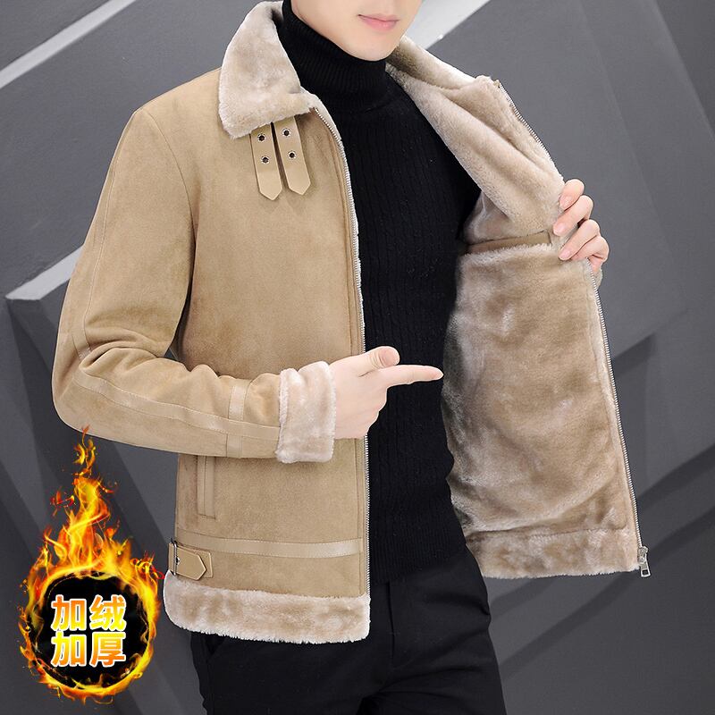 Winter deerskin velvet jacket men's short fur one plus velvet thick lamb wool lapel leather jacket motorcycle suit ショート ウィンター 冬物 レザー doushi87978962161