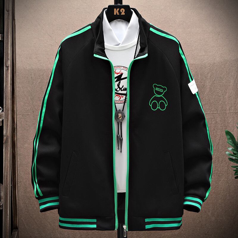 National Tide Stand Collar Jacket Men's Autumn Contrast Color Striped Sports Jacket Men's Tide Youth Cardigan Sweater カーディガン オータム 秋物 ストライプ doushi36749864340