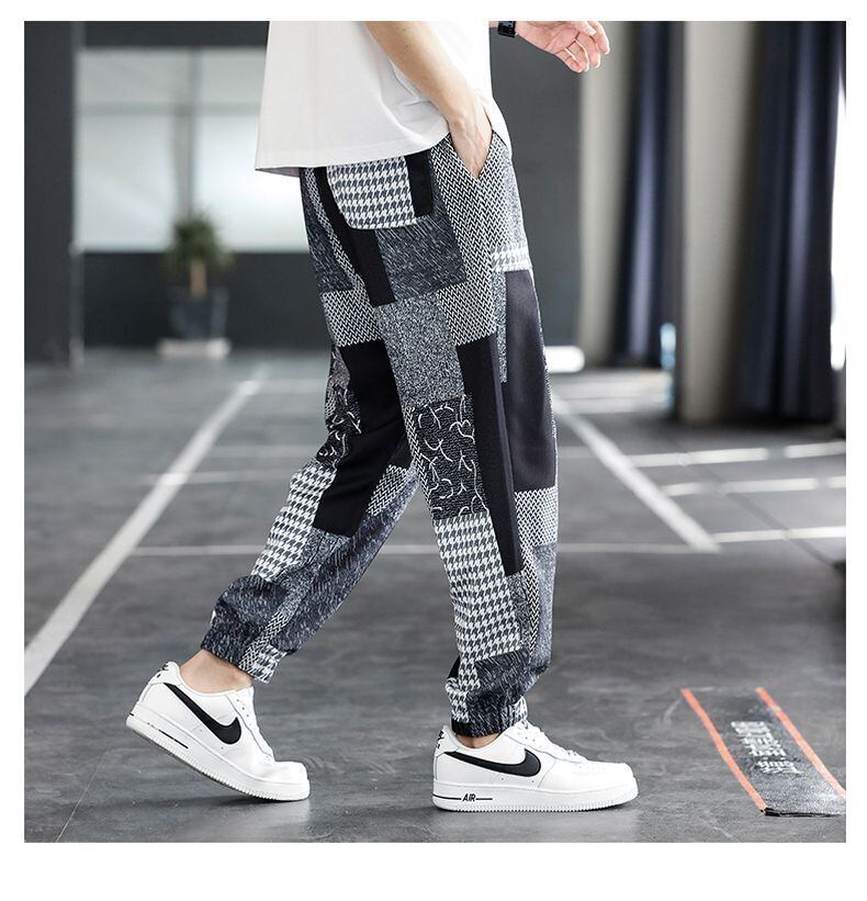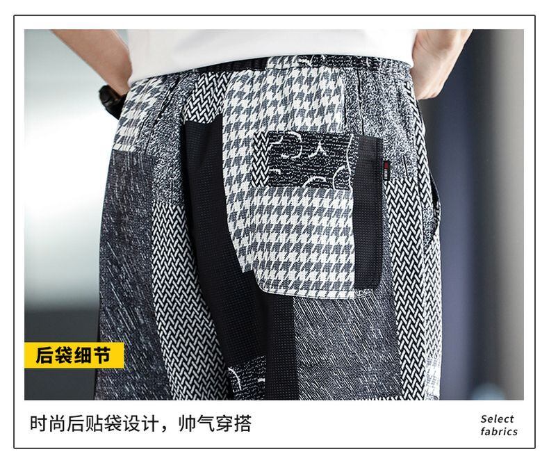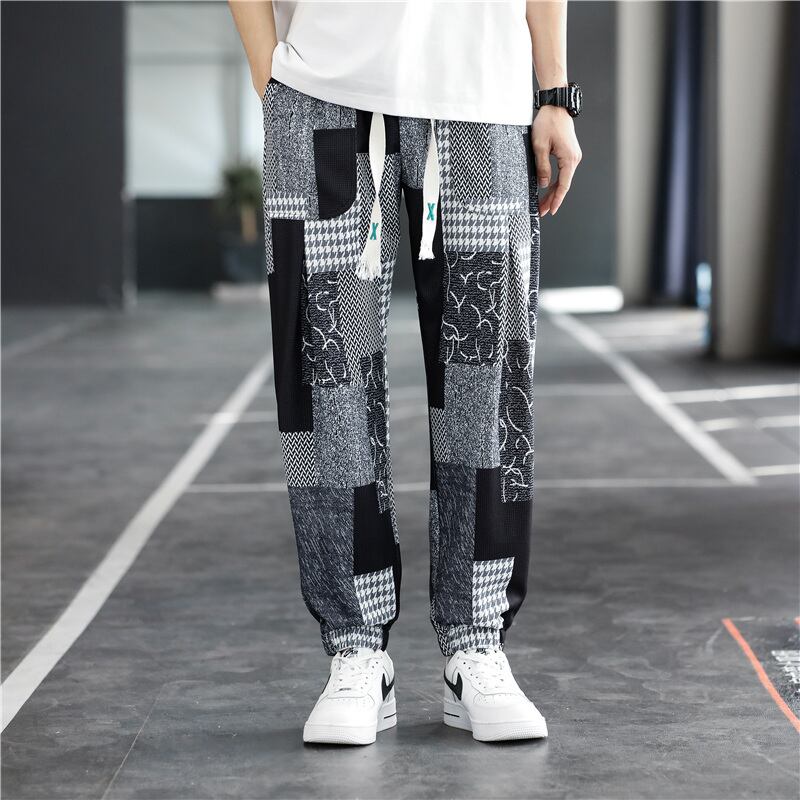 Pants men's autumn thin section cool ice silk casual trousers men's tide brand color block nine points tie-tie men's pants カジュアル オータム 秋物 シルク doushi7840743926