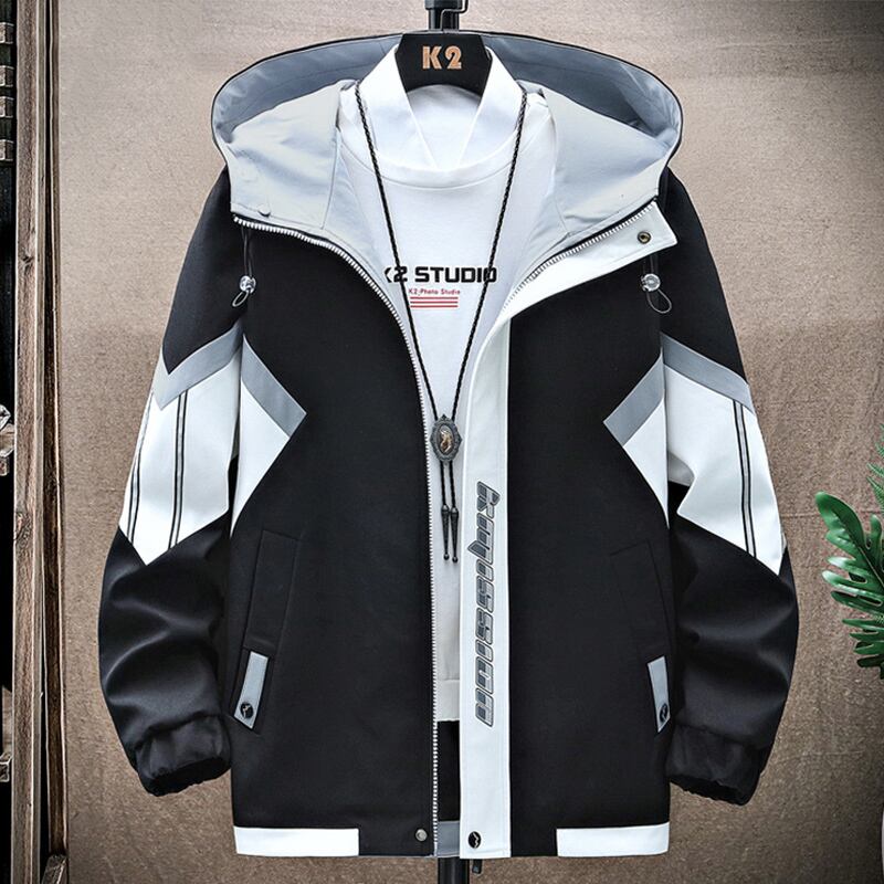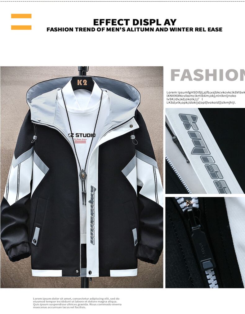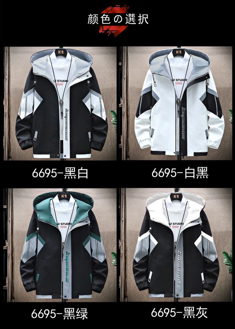 Workwear Jacket Men's Spring and Autumn Tide Contrast Color Splicing Hooded Jacket Men's Youth Loose Gown スプリング 春物 オータム 秋物 doushi53508722298