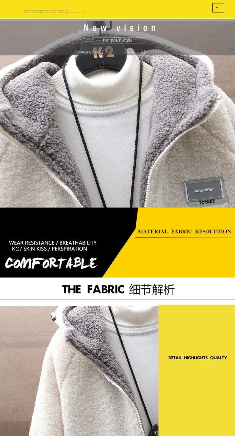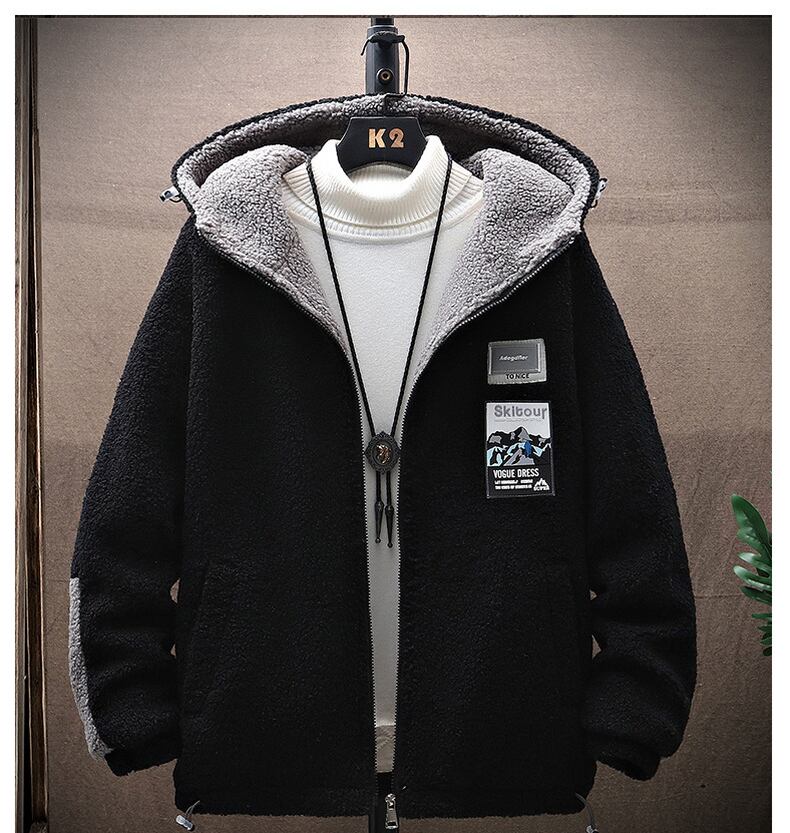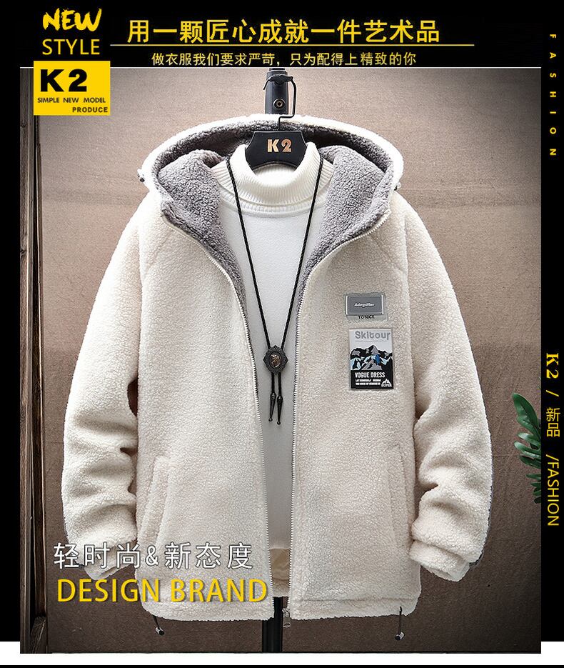 Lamb wool jacket men's tide brand version of the spring and autumn winter grain velvet jacket loose all-match polar fleece hooded sweater スプリング 春物 オータム 秋物 ウィンター 冬物 doushi96095862195