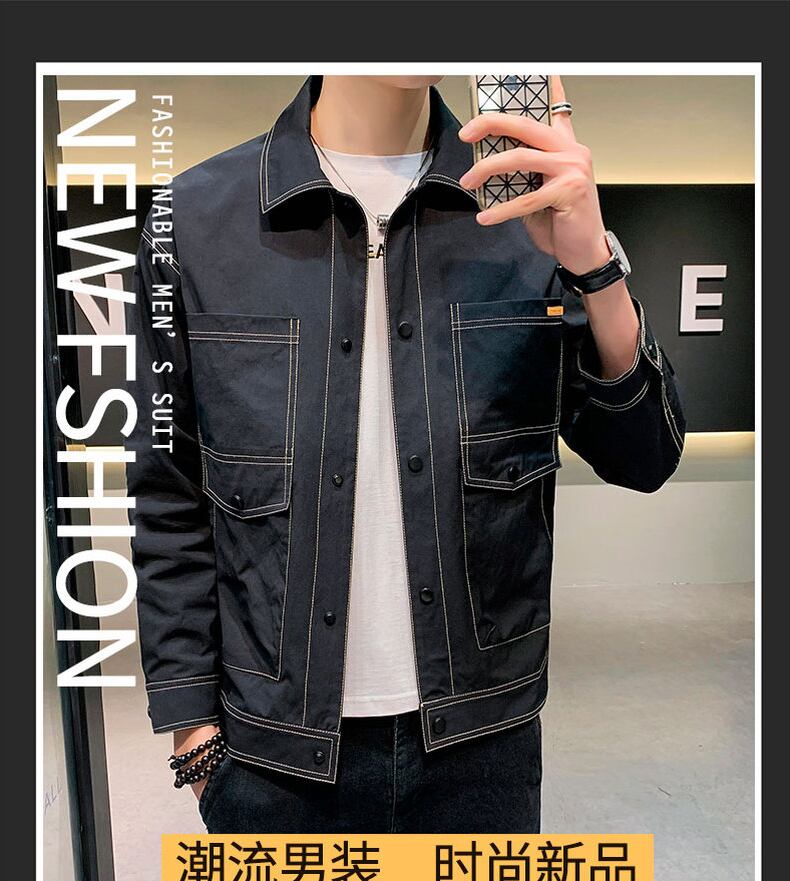 2022 new spring and autumn jacket men's version of the slim jacket youth lapel all-match thin spring tooling top スプリング 春物 オータム 秋物 スリム doushi50455747557