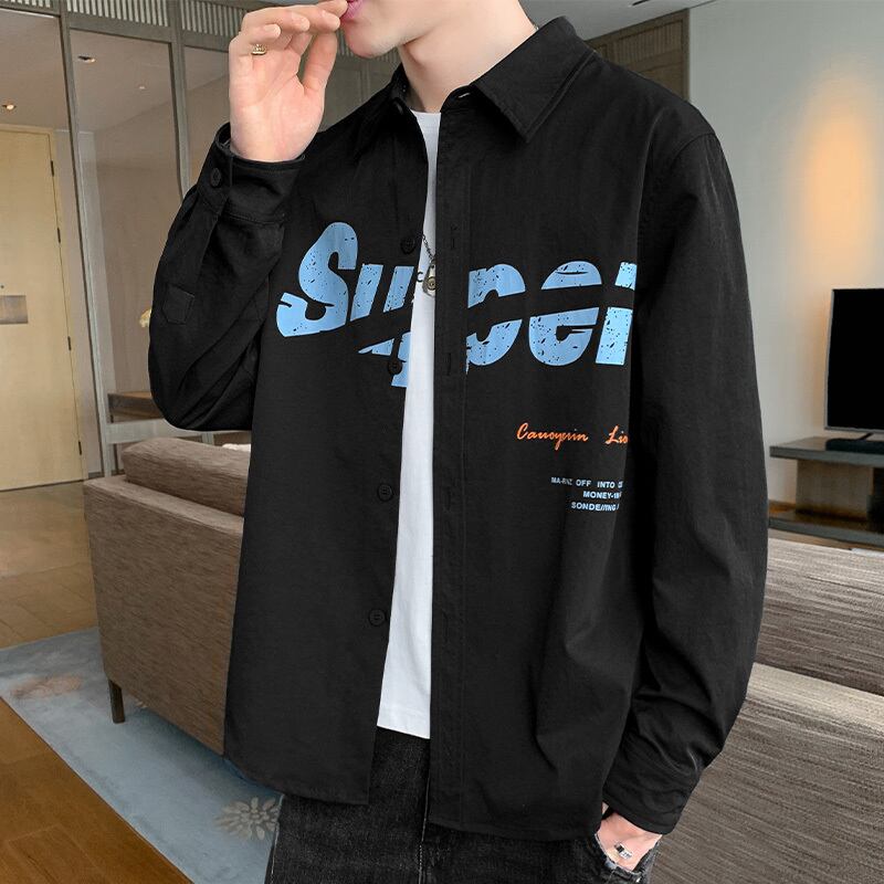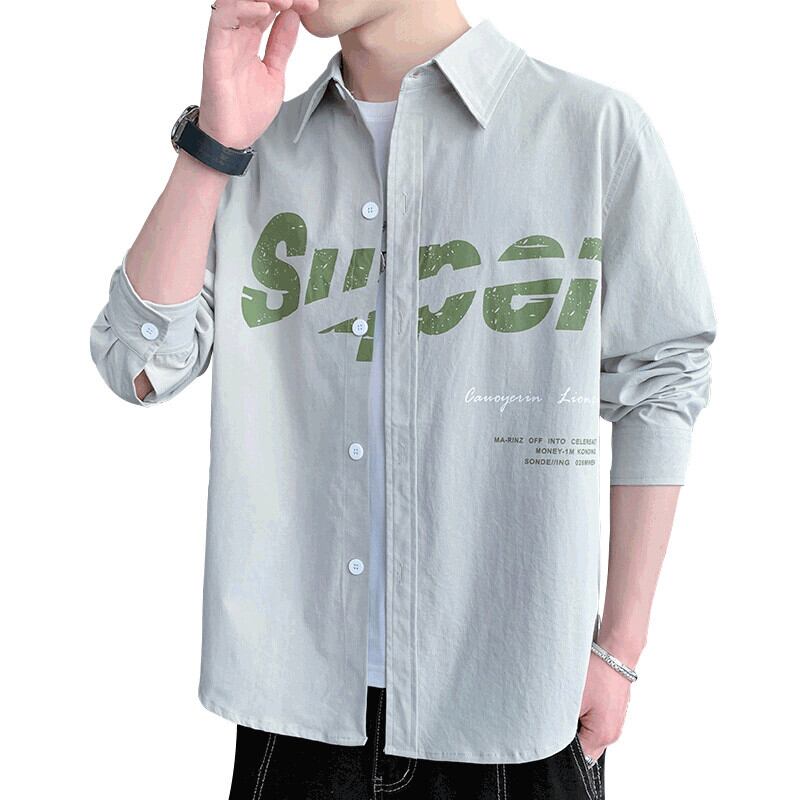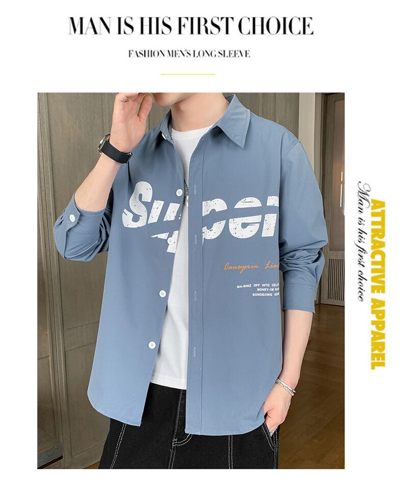 ese fashion brand long-sleeved shirts men's summer loose all-match trend printing non-iron shirts spring and autumn thin section ロング シャツ スプリング 春物 サマー 夏物 オータム 秋物 doushi19218837847