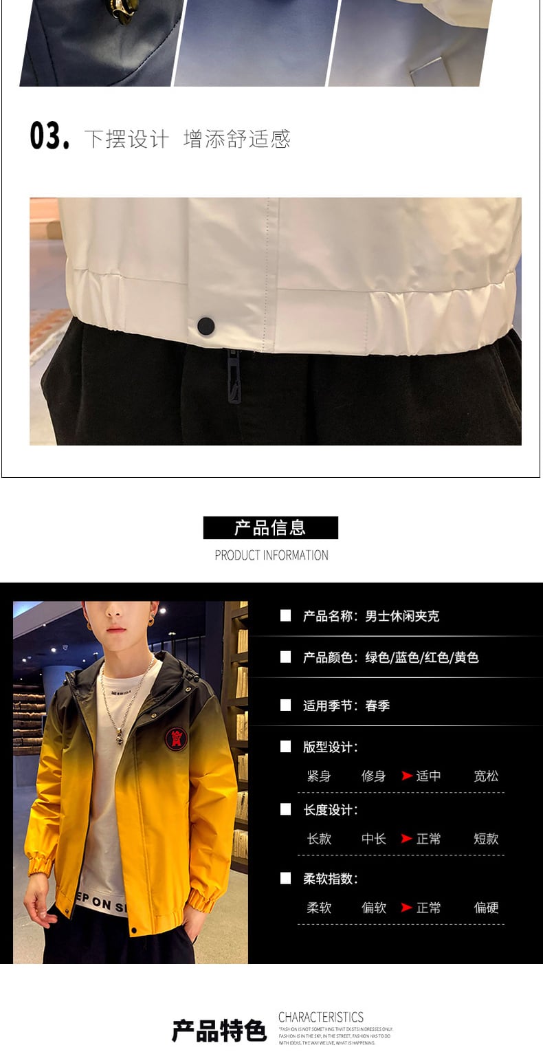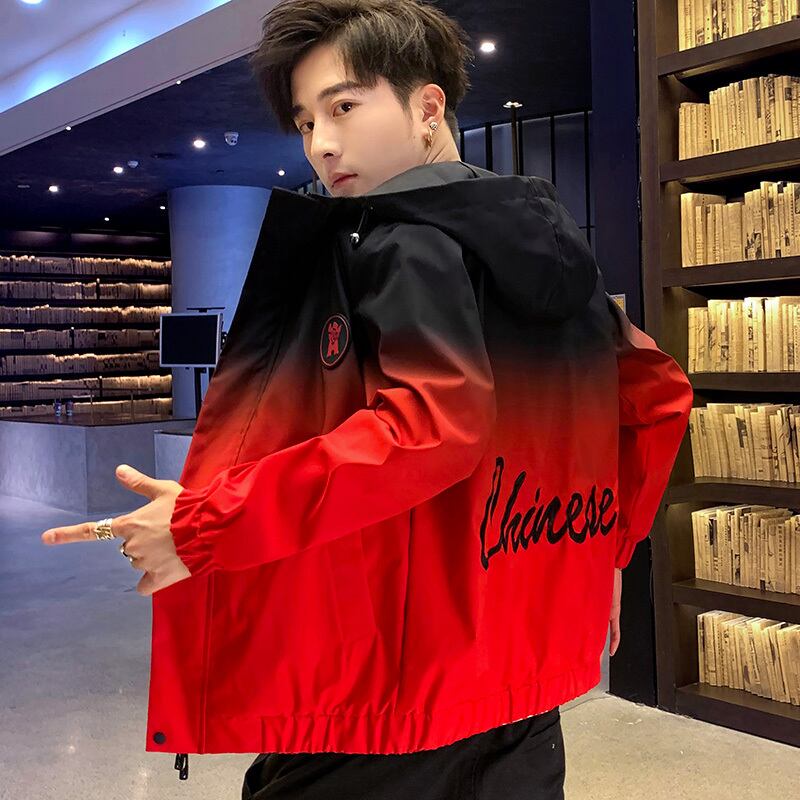 Men's Spring and Autumn Gradient Hooded Jacket Summer Thin Print Trend Autumn and Winter Jackets Tooling Tops スプリング 春物 サマー 夏物 オータム 秋物 ウィンター 冬物 doushi72488144595