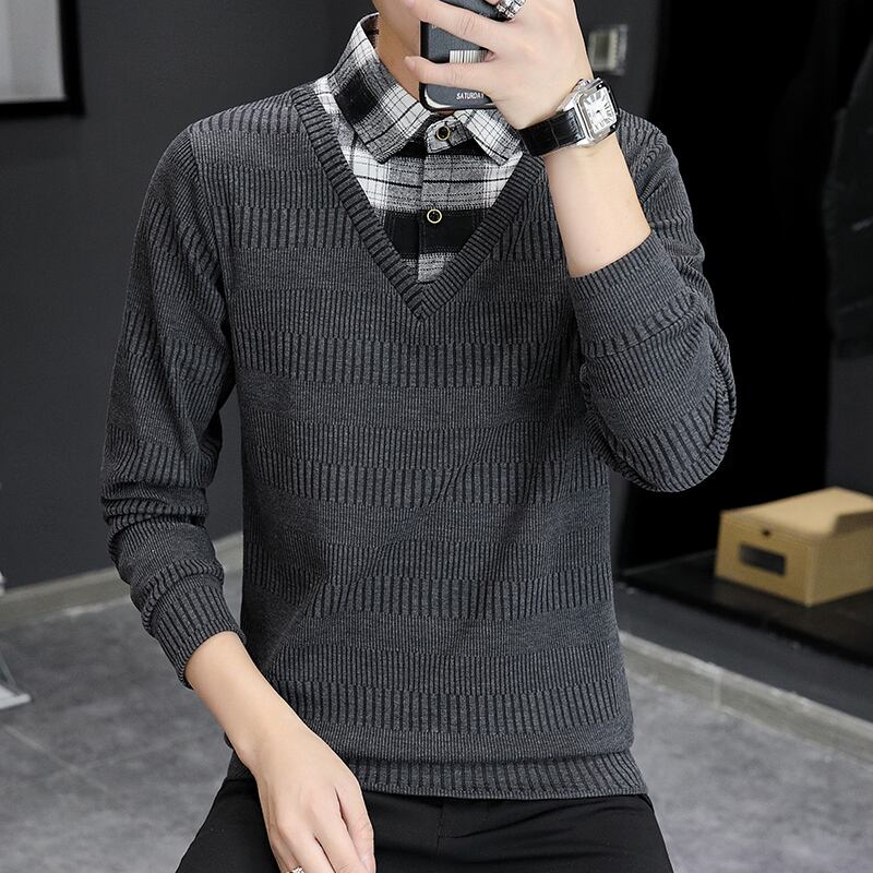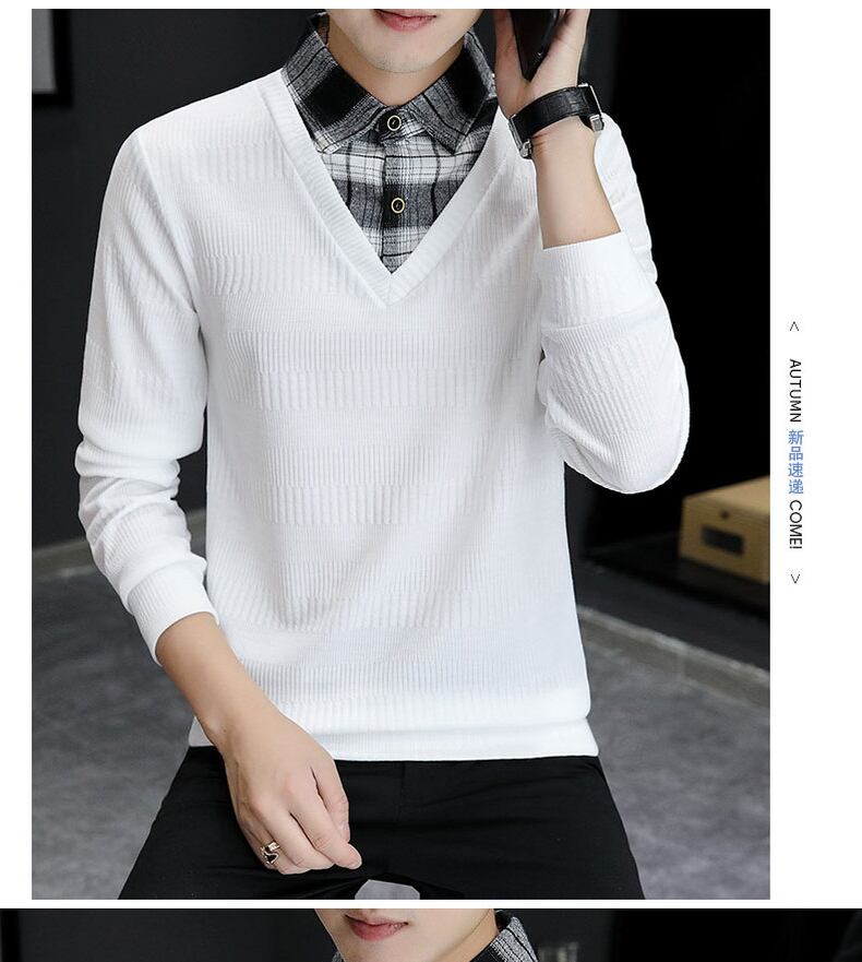 Spring and autumn long-sleeved sweater men's new version loose fake two-piece coat shirt collar knitted sweater trendy ロング スプリング 春物 オータム 秋物 doushi8337554165