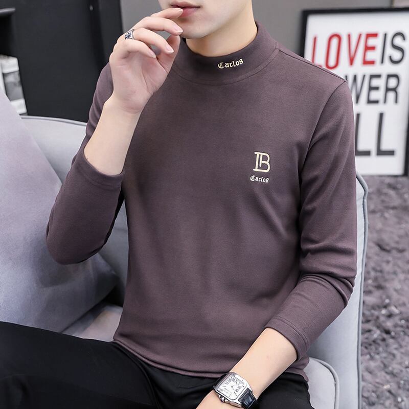 Autumn and winter half turtleneck long-sleeved t-shirt men's ins tide brand version of the trend warm clothes men's German velvet bottoming shirt ロング オータム 秋物 ウィンター 冬物 Tシャツ doushi81082920653