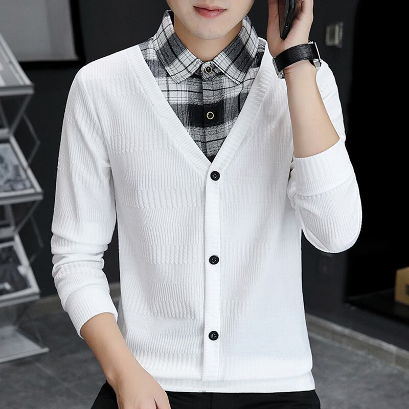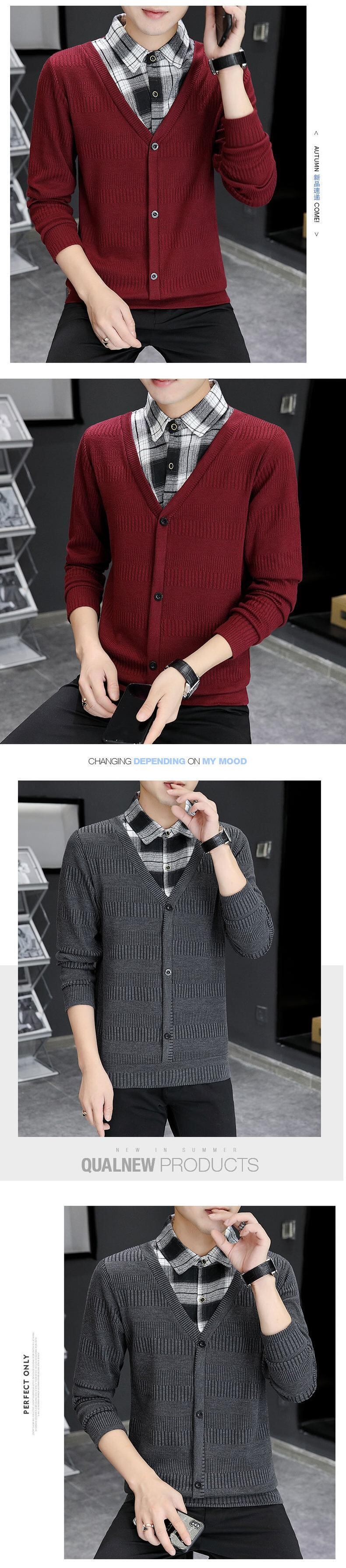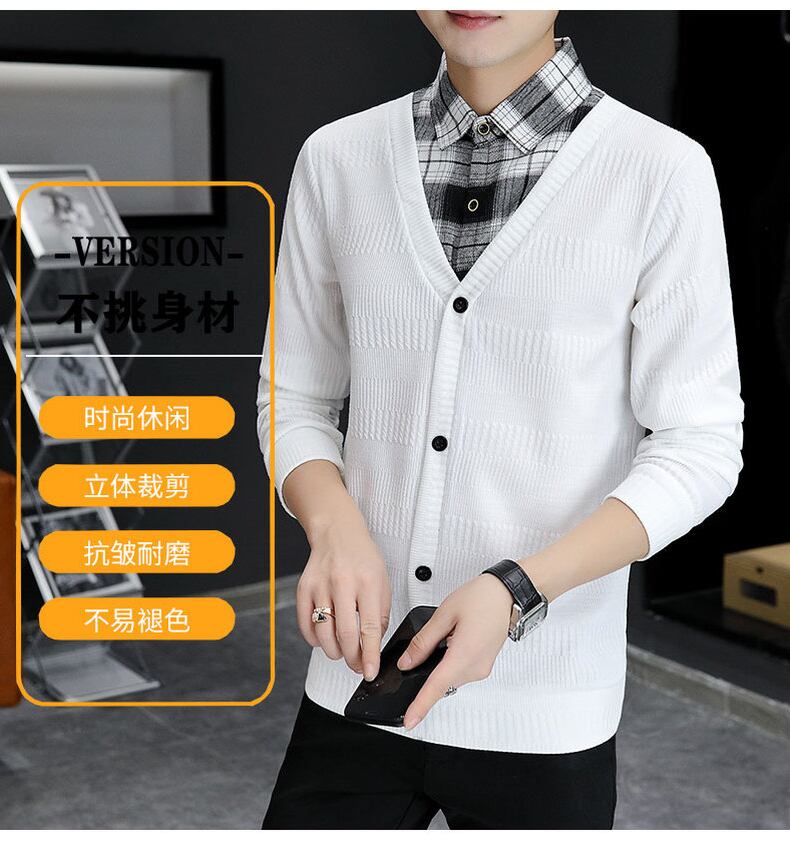 Winter sweater men's version loose long-sleeved knitted sweater sweater fake two pieces of winter shirt collar clothes ins tide ロング ウィンター 冬物 doushi23332544700