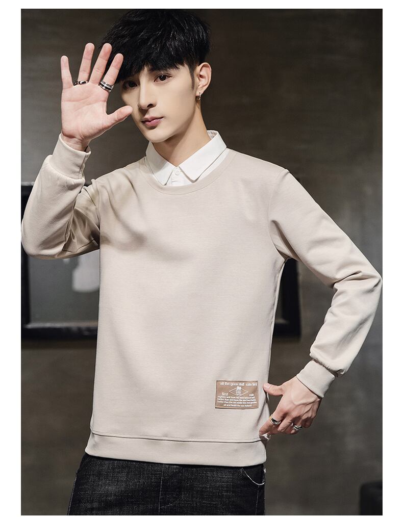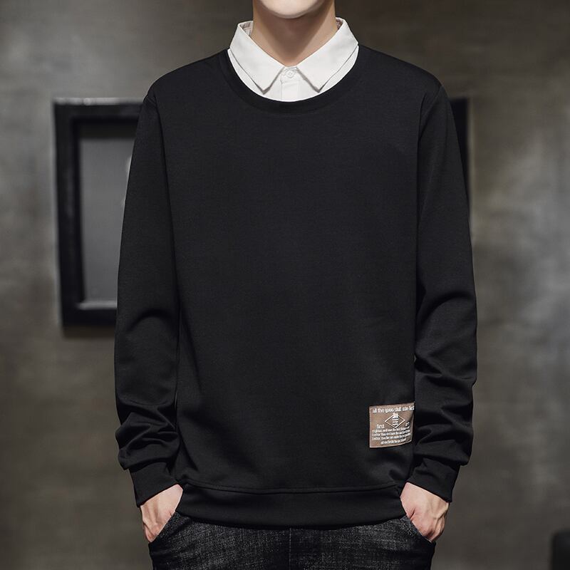 Fake two-piece t-shirt men's long-sleeved spring and autumn tide brand shirt collar sweater casual bottoming shirt trendy clothes ロング カジュアル スプリング 春物 オータム 秋物 Tシャツ doushi86805976774