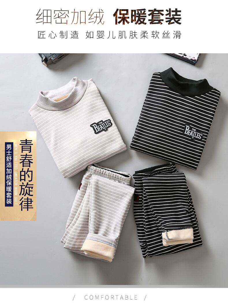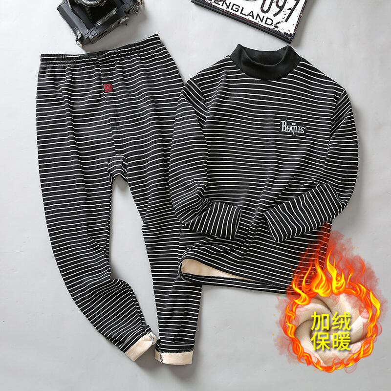 Winter thermal underwear men's plus velvet thickened half turtleneck youth junior high students cotton sweater autumn clothes long pants suit ロング コットン オータム 秋物 ウィンター 冬物 doushi18020840944