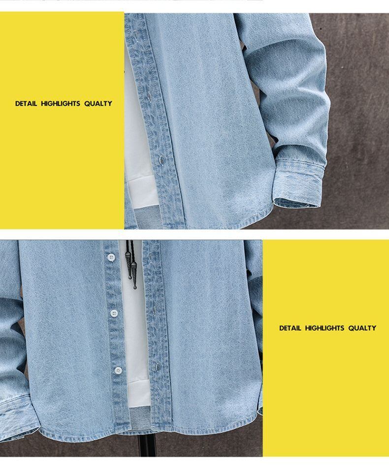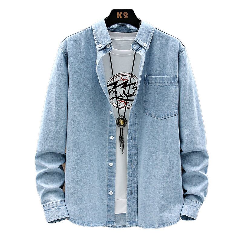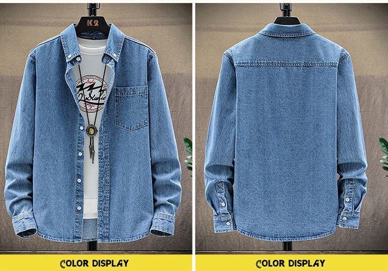 2022 new long-sleeved shirt cotton top bottoming shirt thin section all-match solid color lapel denim jacket jacket men ロング コットン ソリッドカラー doushi94248429338