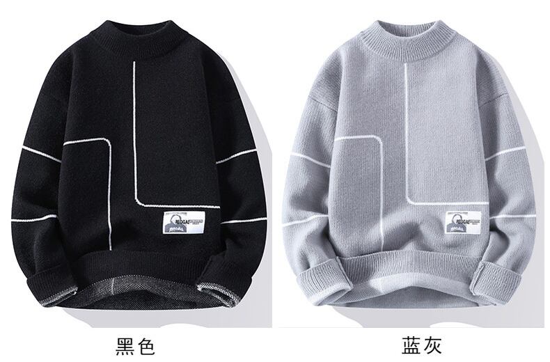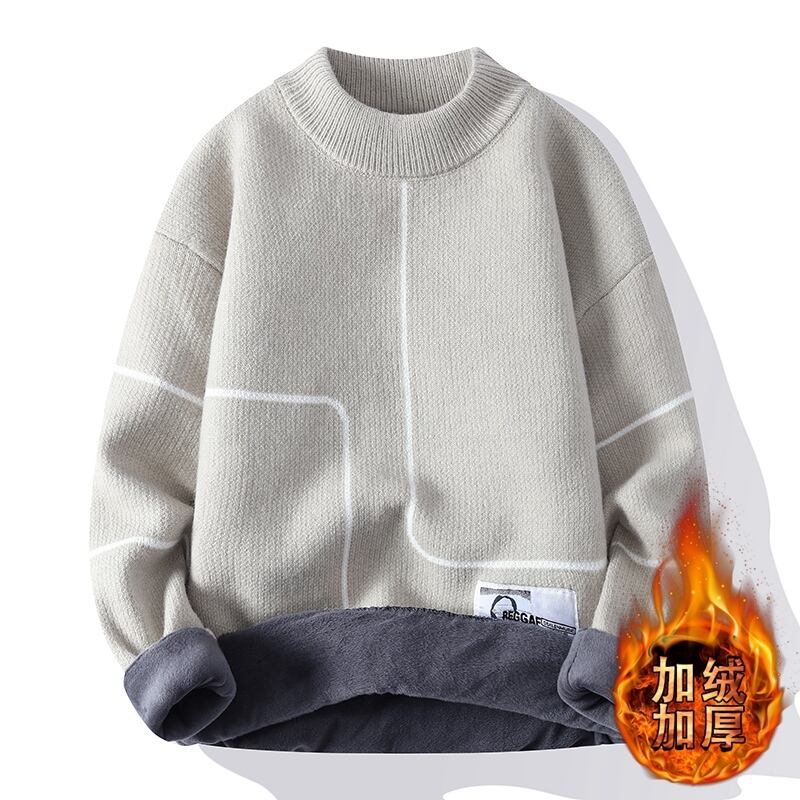 Autumn and winter men's pullover plus velvet thick bottoming knitted sweater young students half turtleneck warm solid color simple sweater オータム 秋物 ウィンター 冬物 ソリッドカラー doushi44796006962