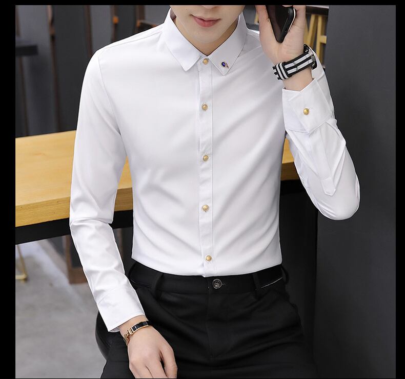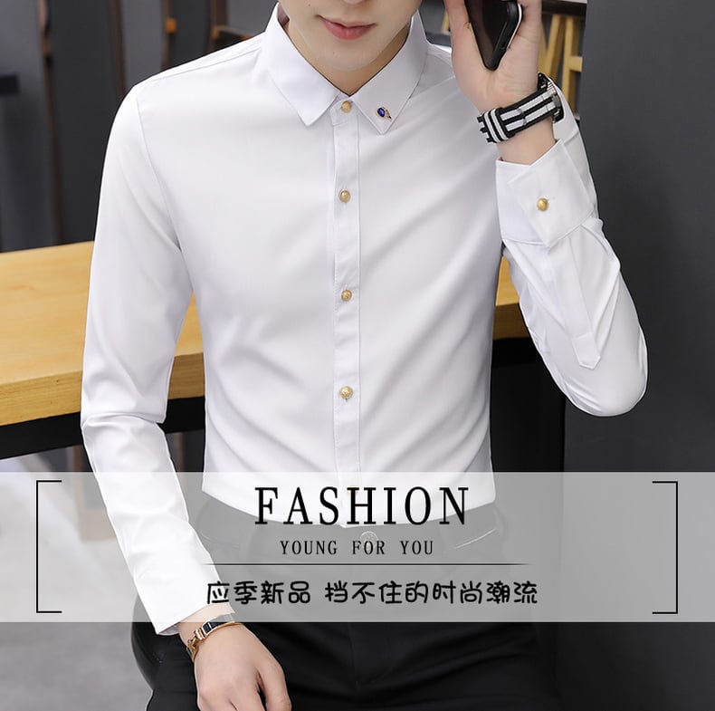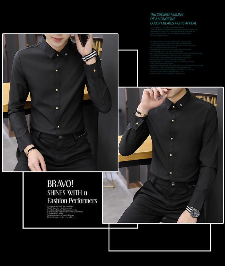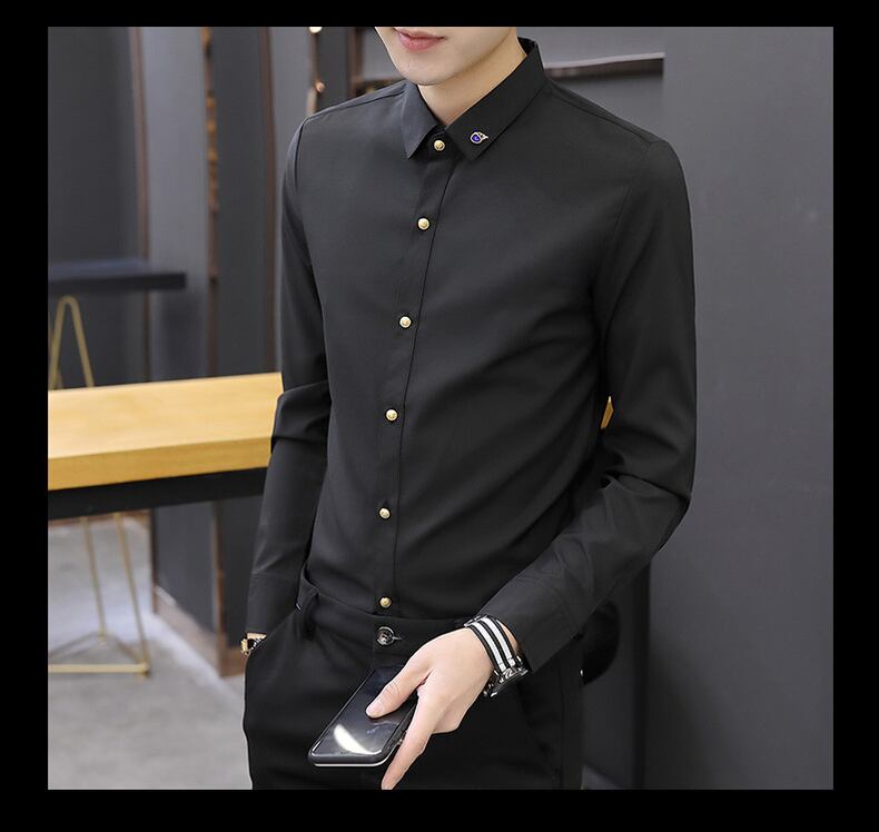 Shirts, long-sleeved men's casual tops, black shirts, suits, bottoming, slim fit, thin inch shirts, trendy version, autumn ロング ブラック カジュアル シャツ オータム 秋物 スリム doushi72078497083