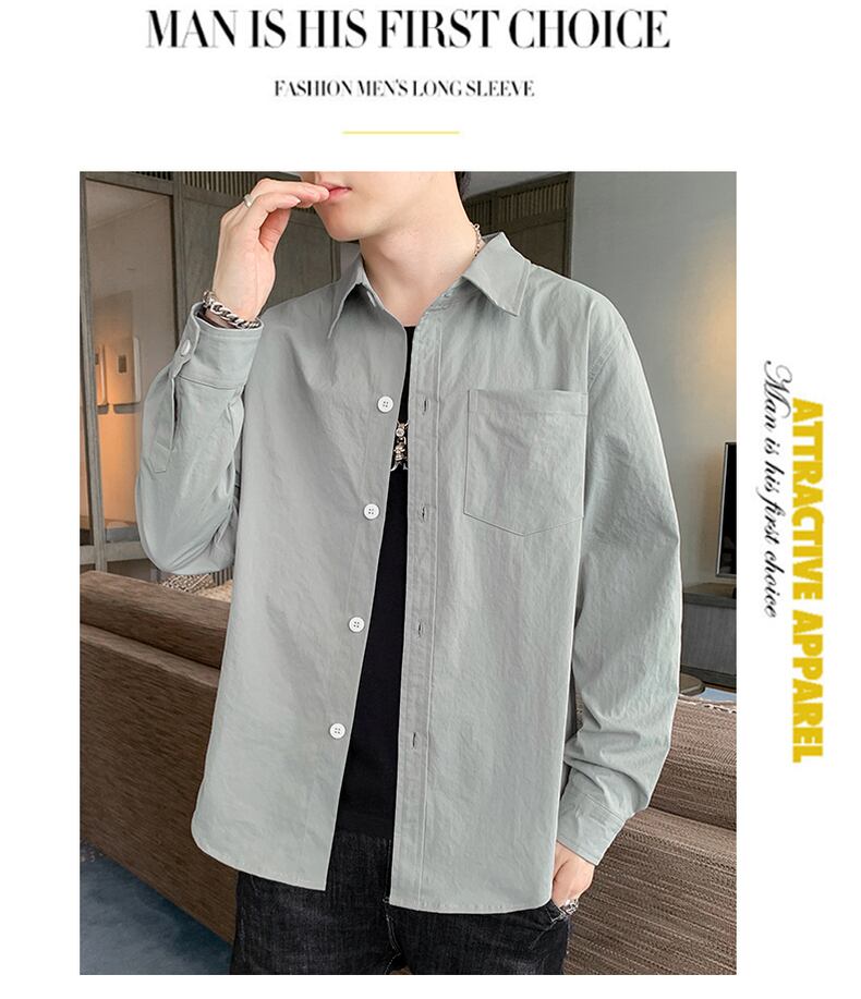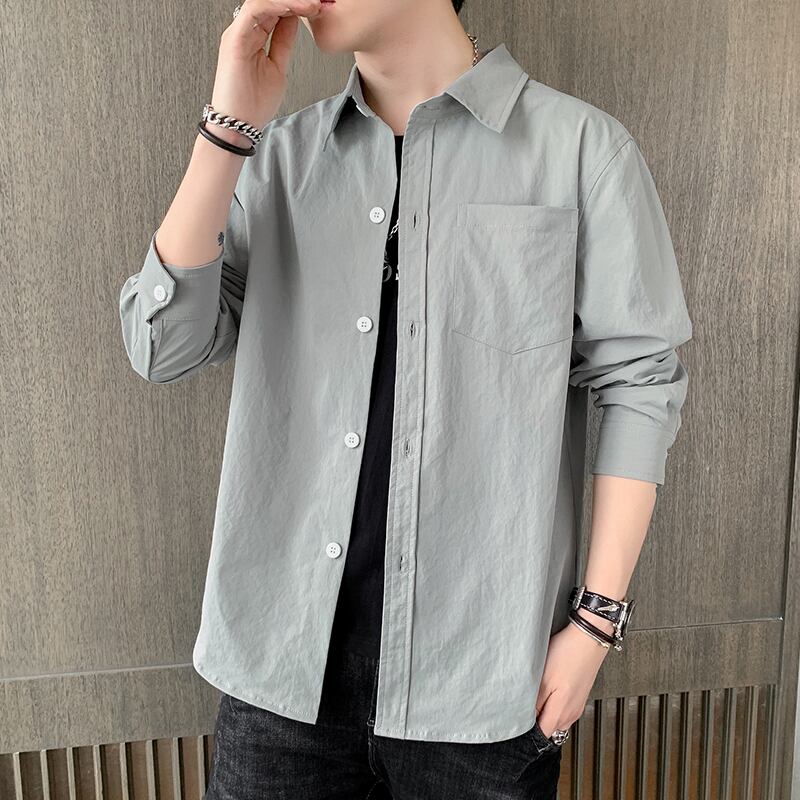 Shirt men's long-sleeved summer thin section 2022 new trendy brand casual ruffian handsome shirt spring and autumn tooling jacket ロング カジュアル スプリング 春物 サマー 夏物 オータム 秋物 doushi96808449002