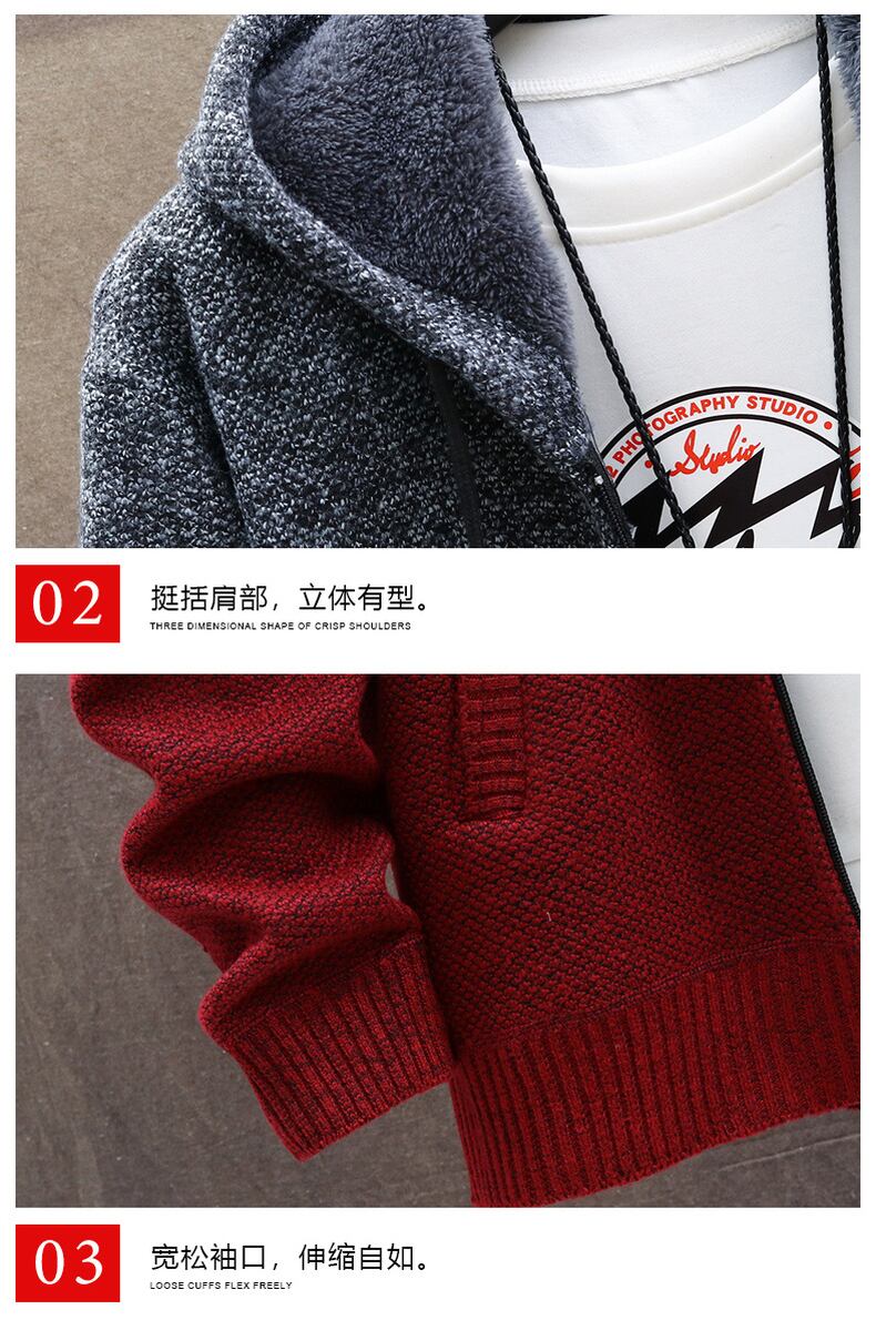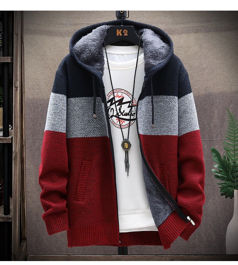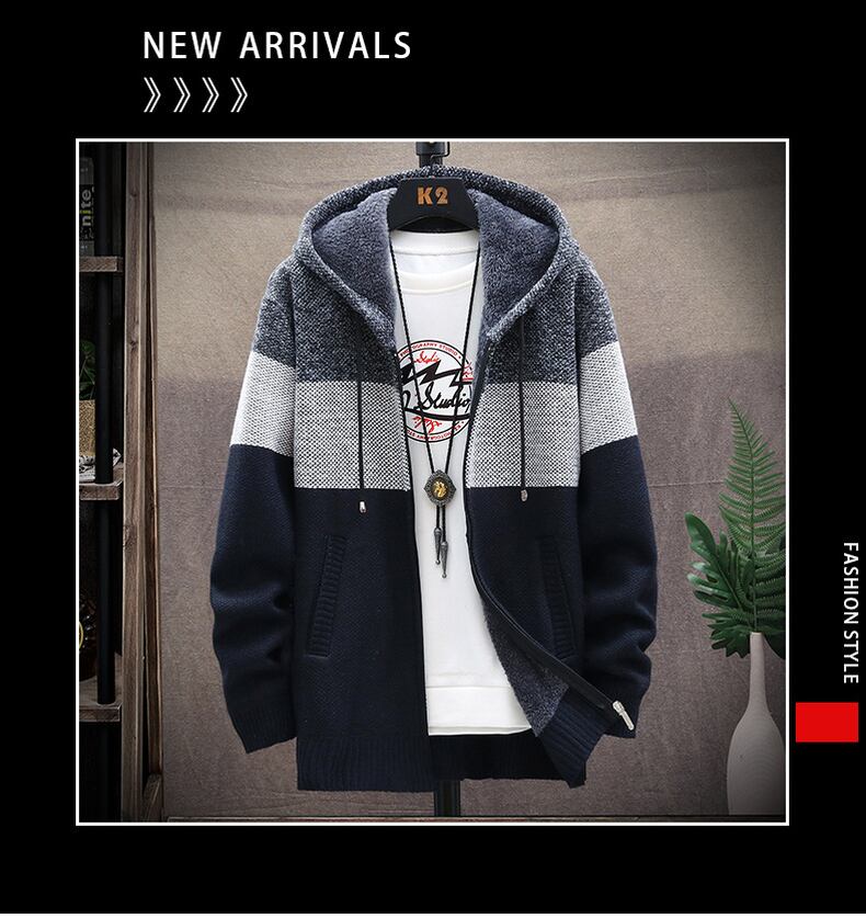 Autumn knitted sweater men's cardigan jacket plus velvet thickened hooded color-blocking sweater men's fashion clothes outer jacket カーディガン オータム 秋物 doushi32497790932