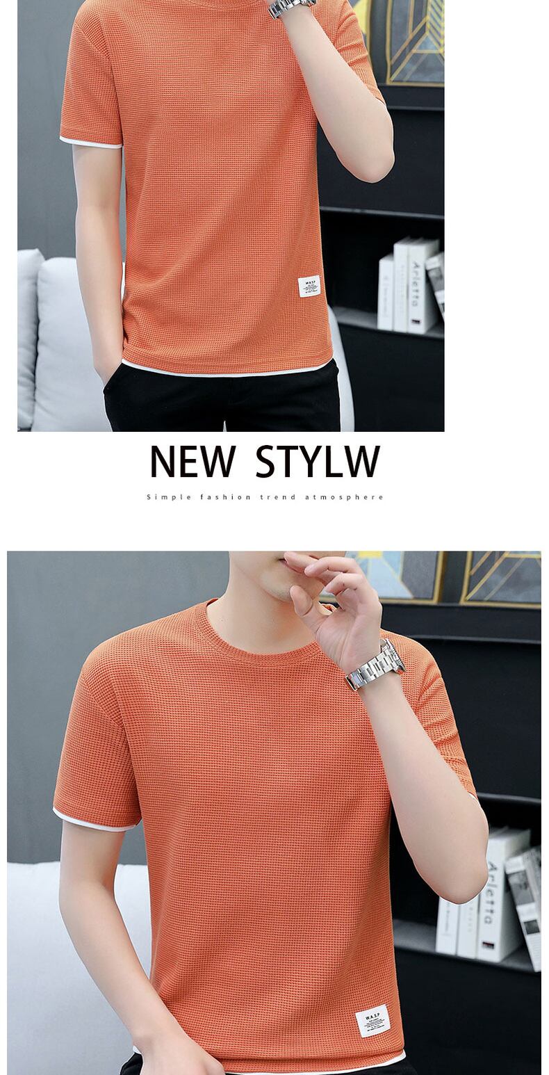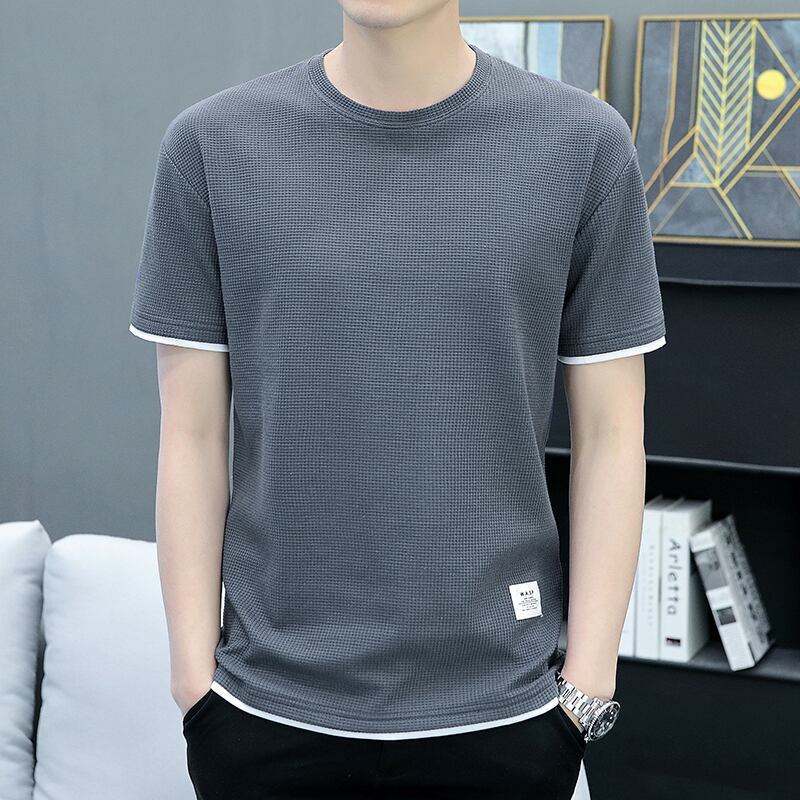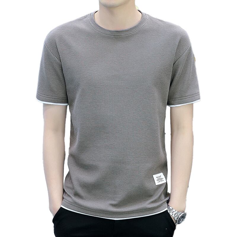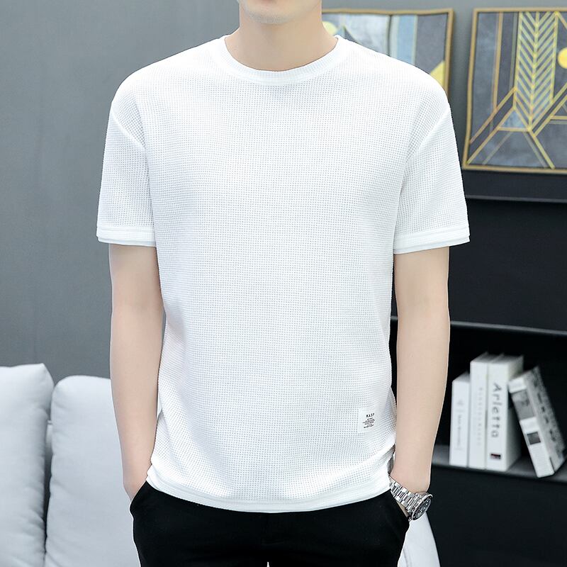 Heavyweight waffle t-shirt men's short-sleeved summer ice silk breathable half-sleeve men's t-shirt tide brand loose ice clothes サマー 夏物 シルク Tシャツ doushi81298349174