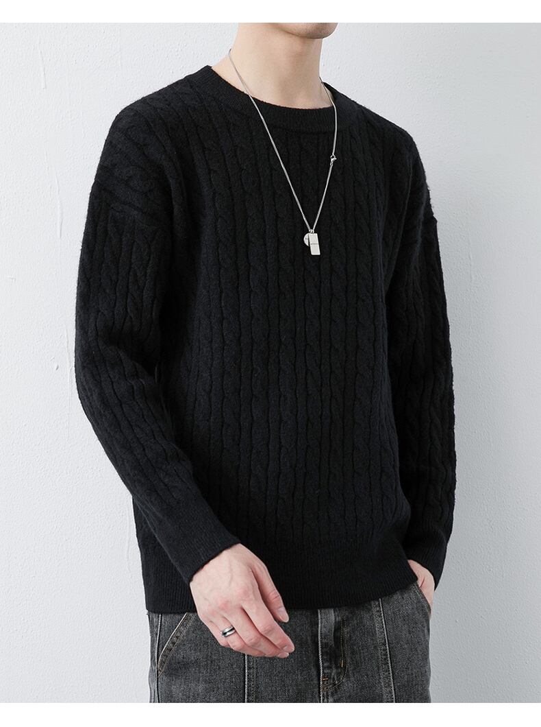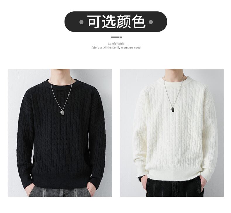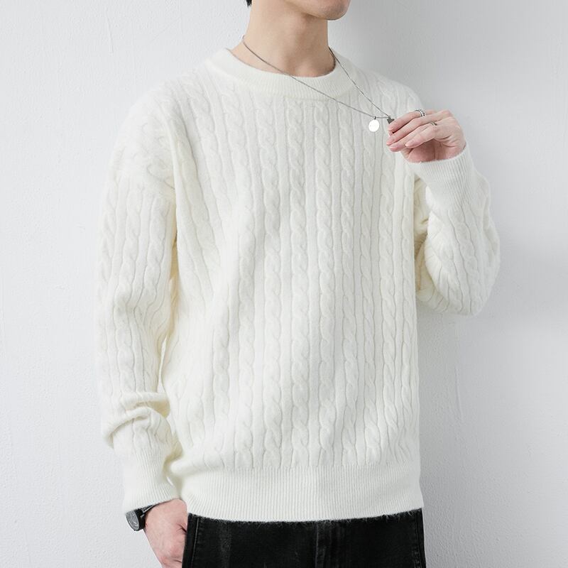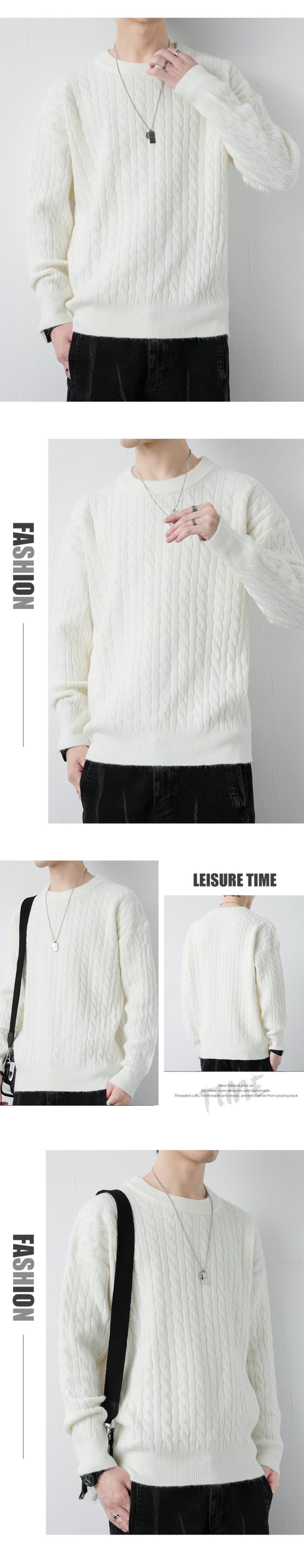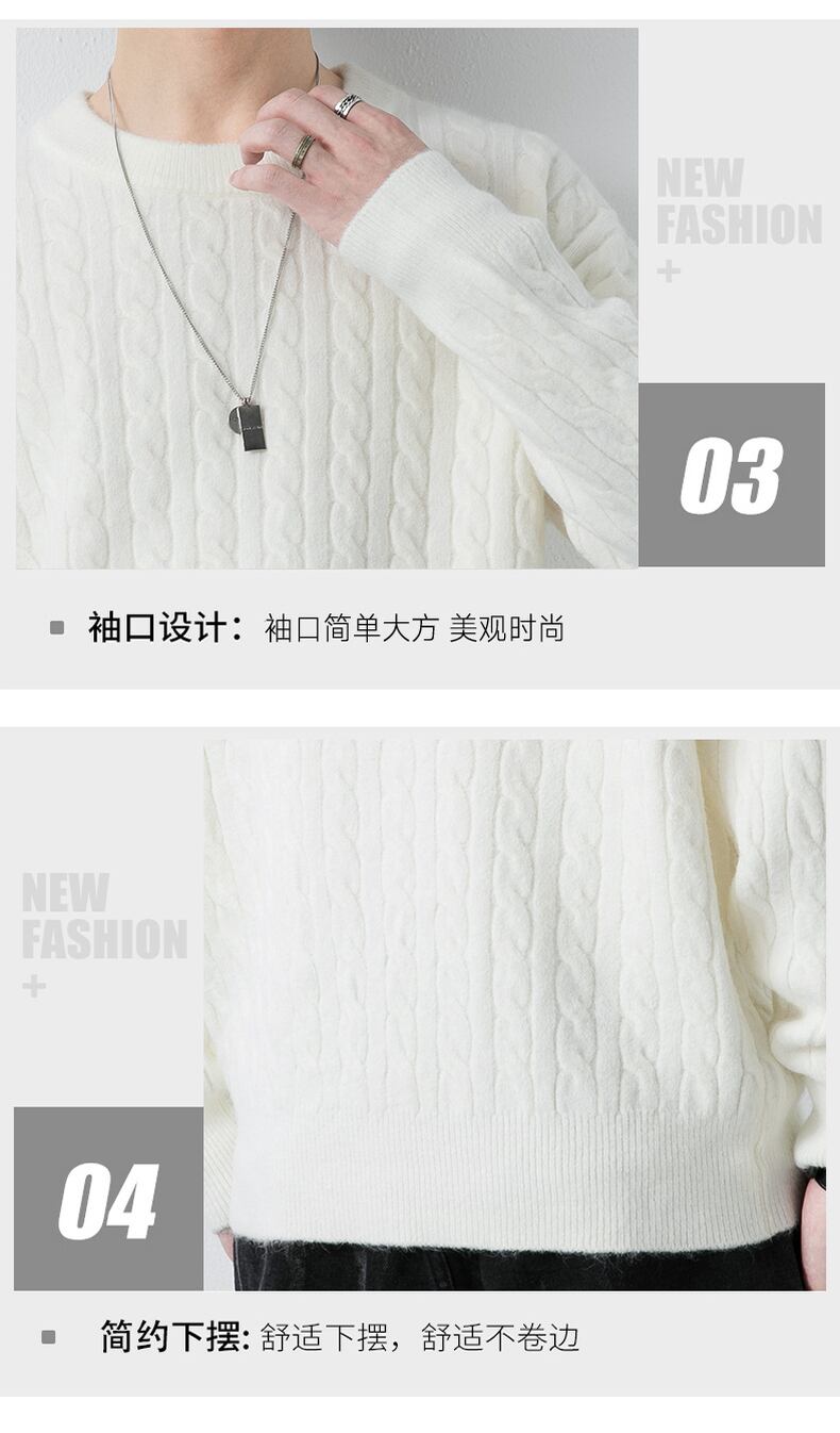 Simple white round neck sweater men's fashion twist flower trend design loose top ins autumn and winter all-match knitted sweater ホワイト オータム 秋物 ウィンター 冬物 Oネック フラワーデザイン doushi22608674038