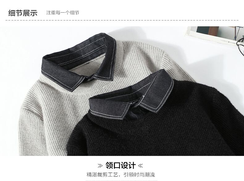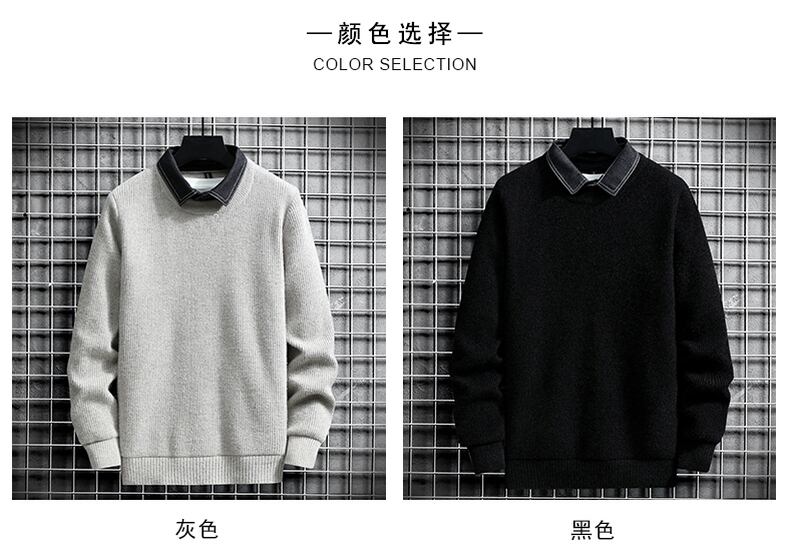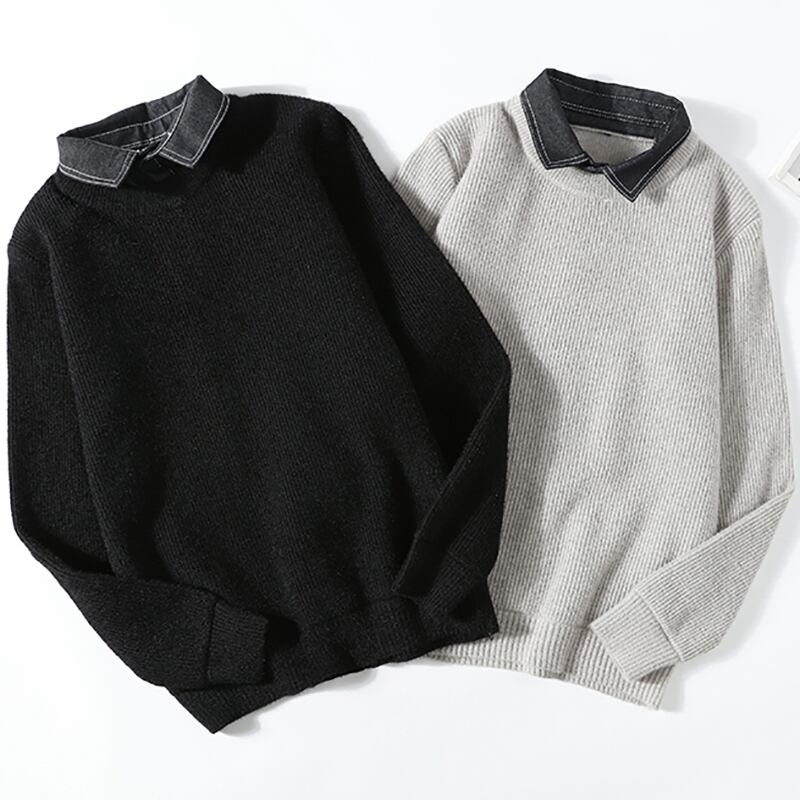 Fake two-piece sweater men's spring and autumn trend solid color all-match shirt collar knitted bottoming shirt スプリング 春物 オータム 秋物 ソリッドカラー doushi69722390047