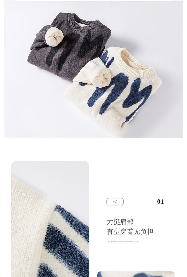 Sweater men's 2022 new knitted sweater version loose thickening plus velvet bottoming shirt round neck sweater warm clothes Oネック doushi7656302260
