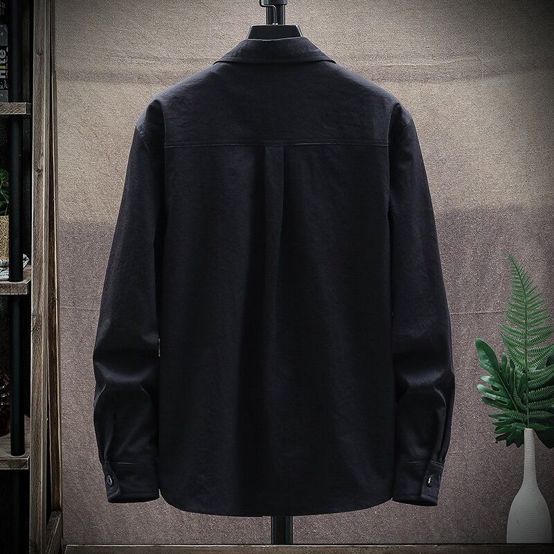 Long-sleeved shirt men's jacket version of the Hong Kong style top clothes outside the trend of autumn thin tooling handsome casual shirt ロング カジュアル オータム 秋物 doushi83804567049