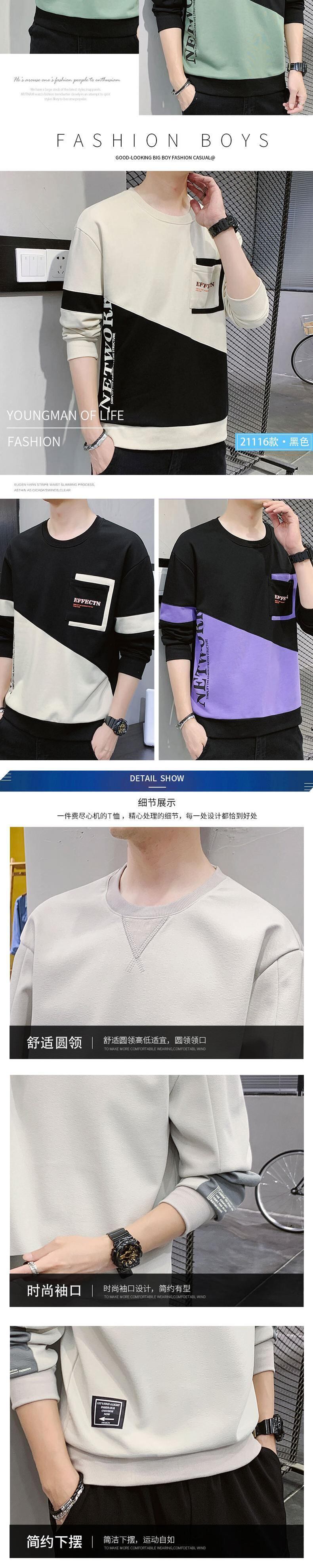 Long-sleeved t-shirt men's clothes spring and autumn ins tide brand all-match boys' round neck sweater men's autumn t-shirt top ロング スプリング 春物 オータム 秋物 Oネック Tシャツ doushi15846496840