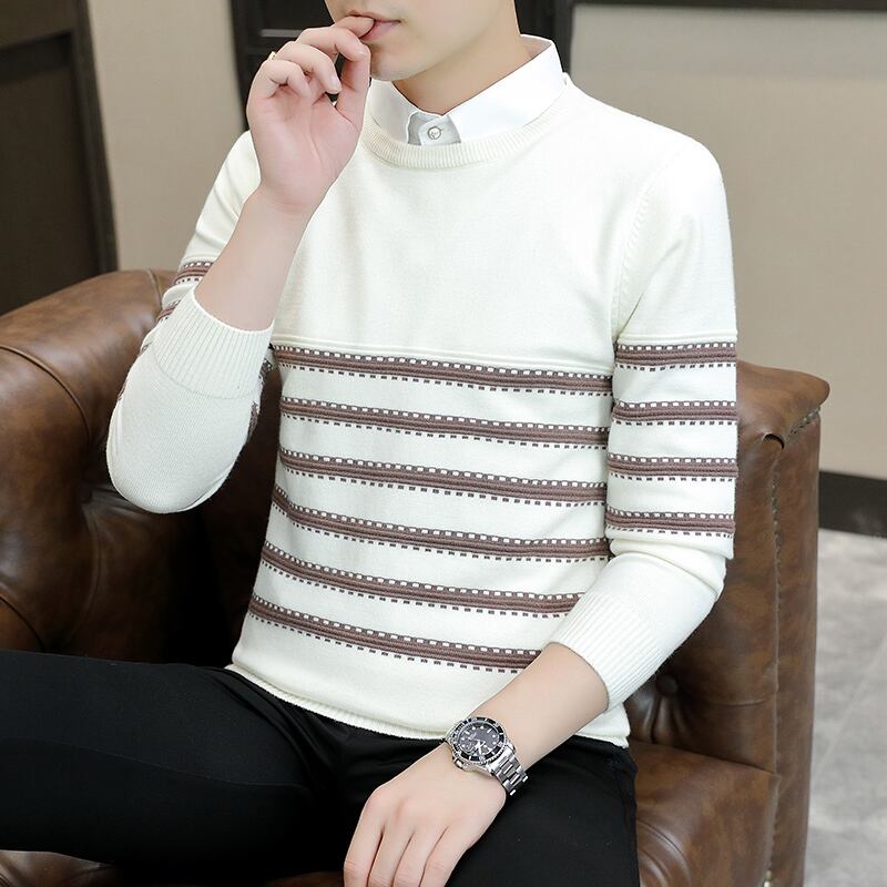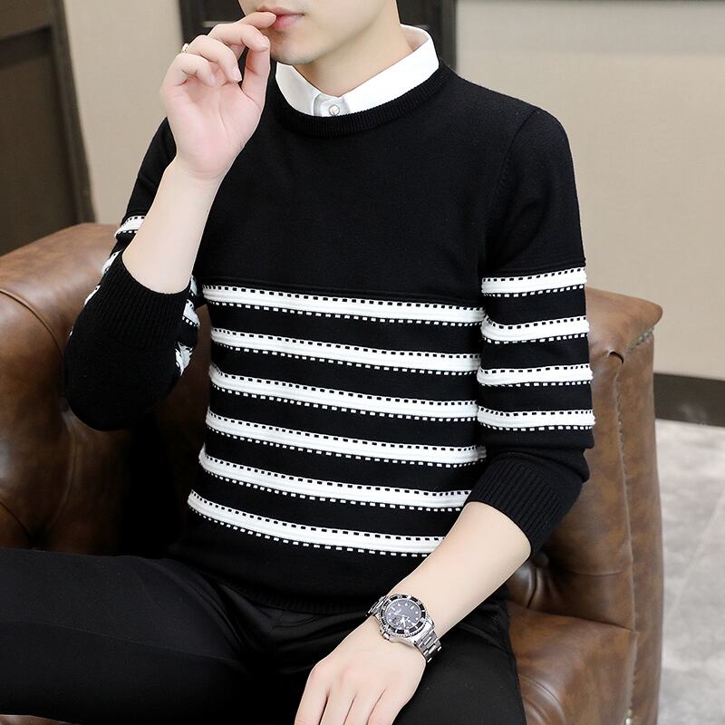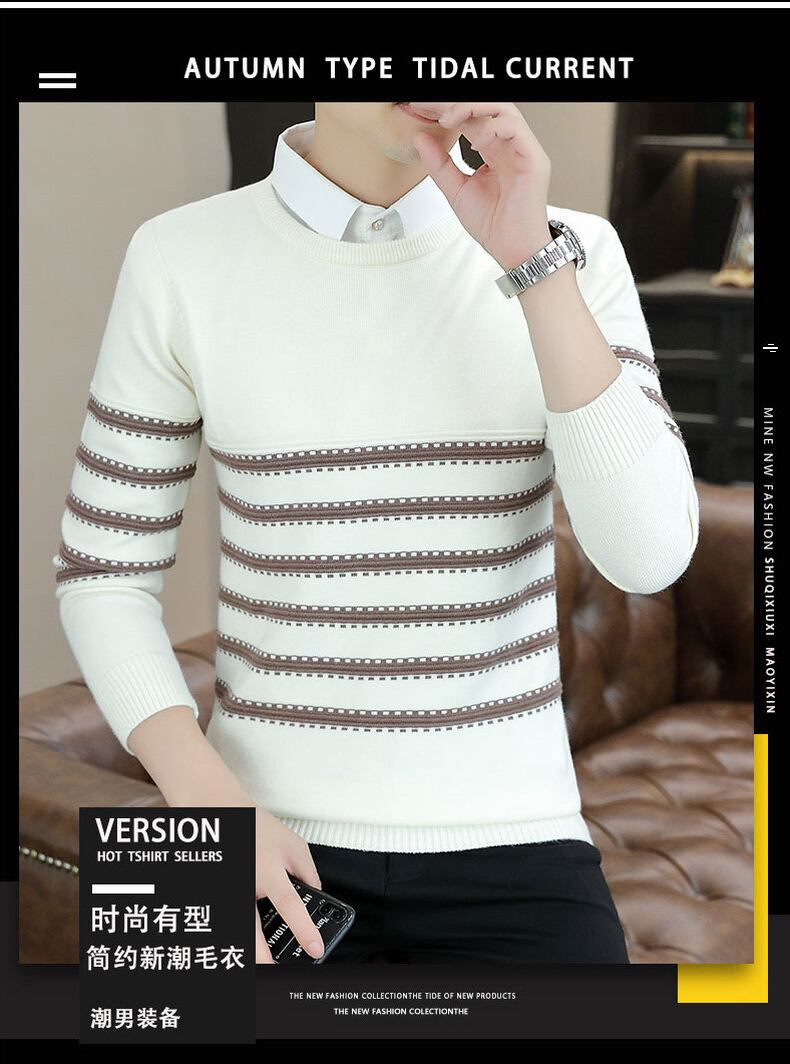 Autumn and winter 2022 new men's fake two-piece sweater trend bottoming sweater men's all-match sweater top clothes オータム 秋物 ウィンター 冬物 doushi59546094272