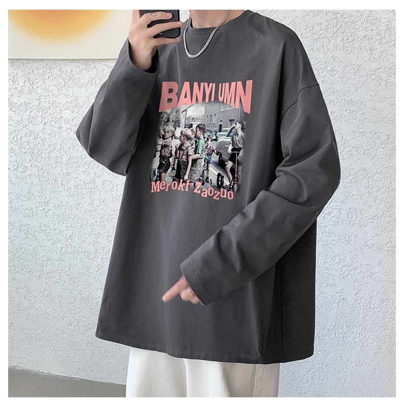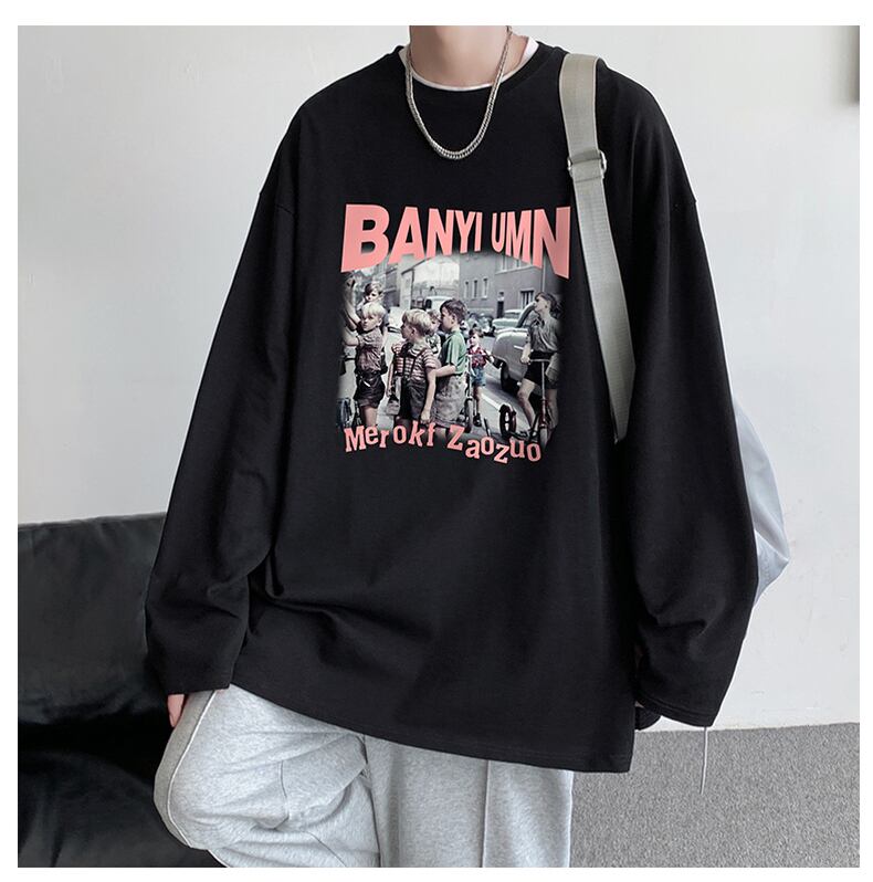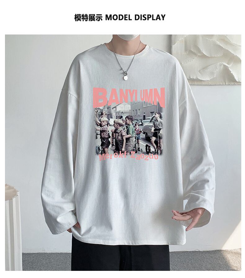 Men's long-sleeved t-shirt spring and autumn trend ins round neck cotton sweater bottoming shirt tide brand youth inner autumn clothes ロング コットン スプリング 春物 オータム 秋物 Oネック Tシャツ doushi42907824655