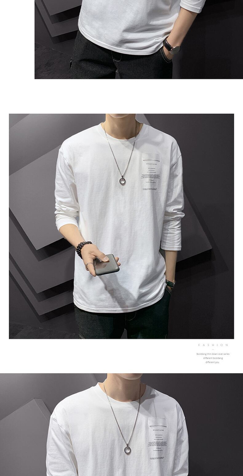 Pure cotton long-sleeved T-shirt spring and autumn men's loose large size bottoming shirt thin section small shirt round neck T-shirt top ロング コットン 大きめサイズ スプリング 春物 オータム 秋物 Oネック Tシャツ doushi18706469435