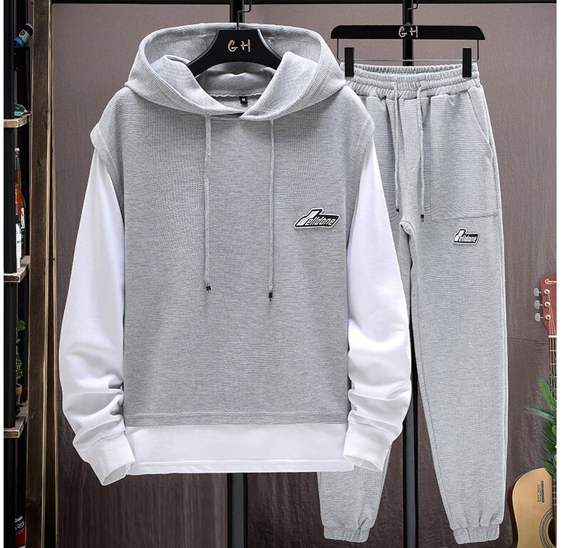 Hooded sweater suit men's spring and autumn vacation two-piece waffle casual sports clothes tide brand ins jacket men カジュアル スプリング 春物 オータム 秋物 doushi93264376110