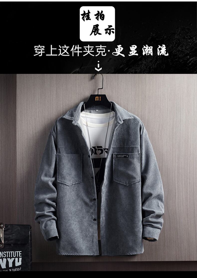 Corduroy long-sleeved shirts men's autumn casual yuppie handsome ins trend boys shirts spring and autumn jackets ロング カジュアル シャツ スプリング 春物 オータム 秋物 doushi99631928177