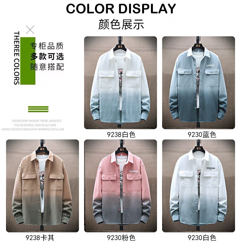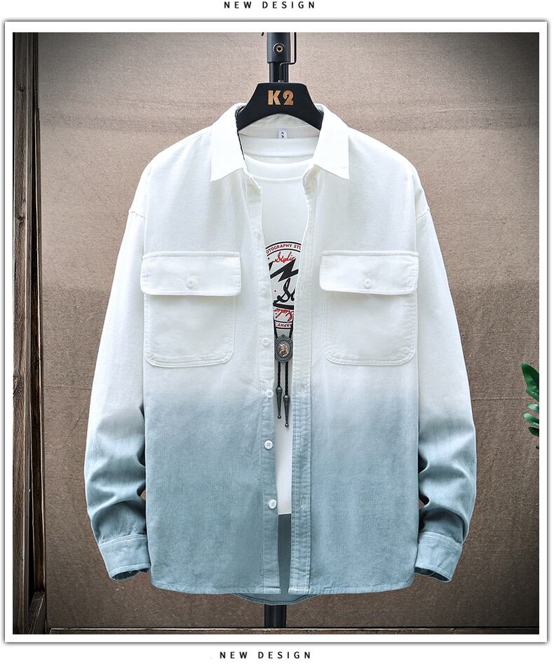 Workwear shirt men's 2022 spring and autumn new trend gradient color casual autumn coat tide brand long-sleeved shirt ロング カジュアル スプリング 春物 オータム 秋物 doushi44781336267