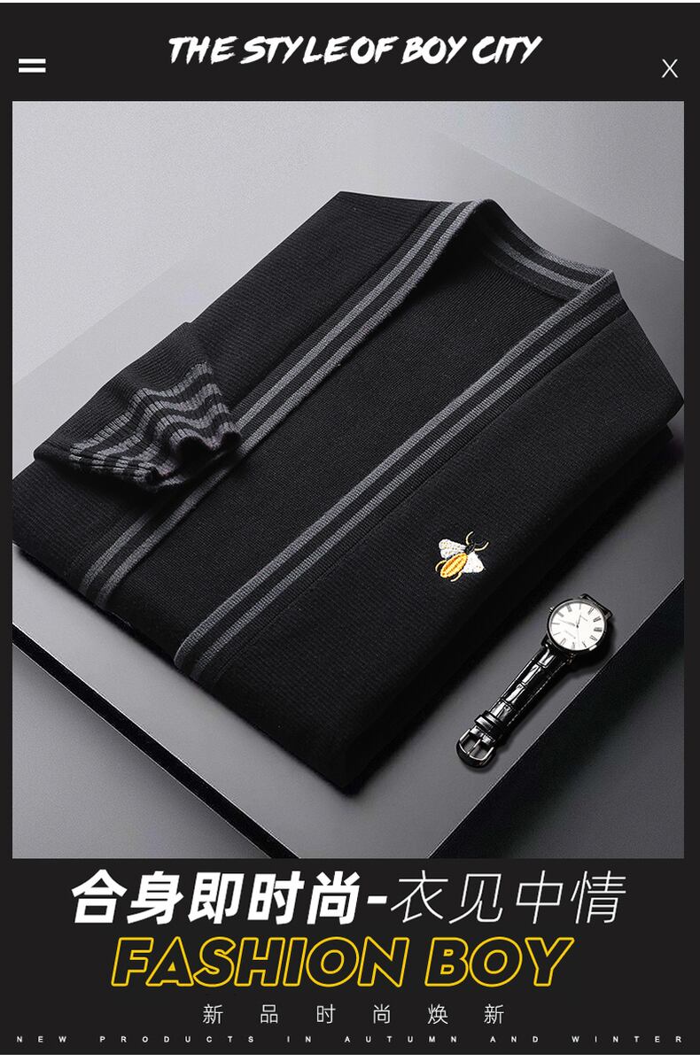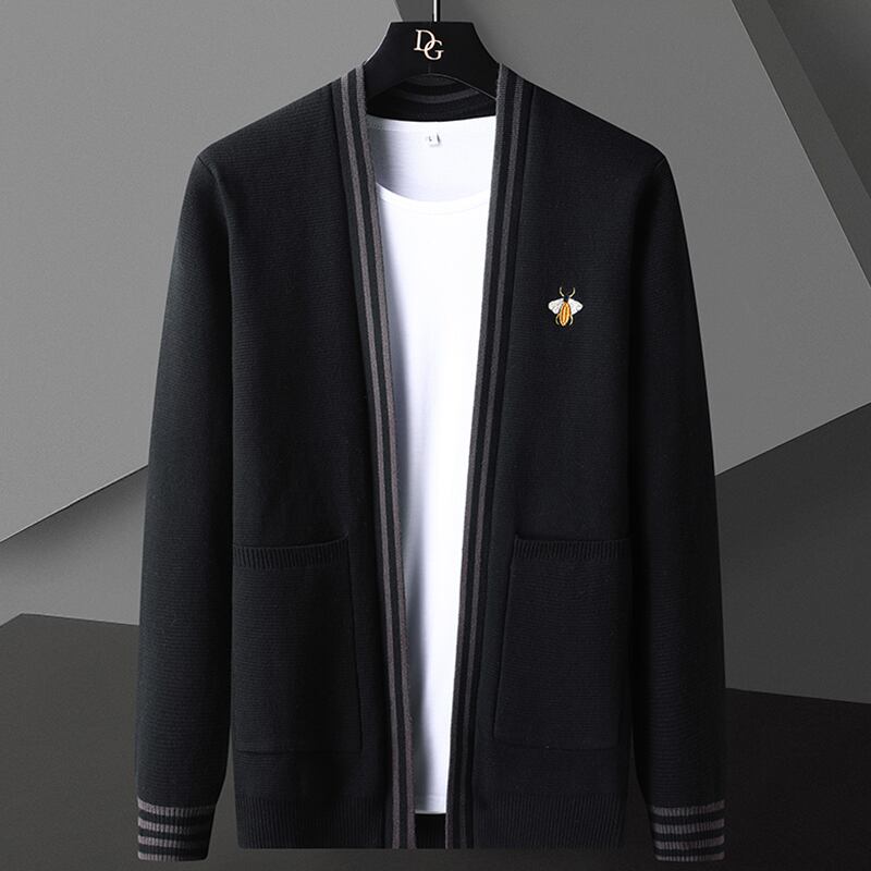 Spring and autumn 2022 tide brand jacket men's personality bee embroidery top coat striped all-match long-sleeved knitted cardigan ロング 刺繍 カーディガン スプリング 春物 オータム 秋物 ストライプ doushi31778945475