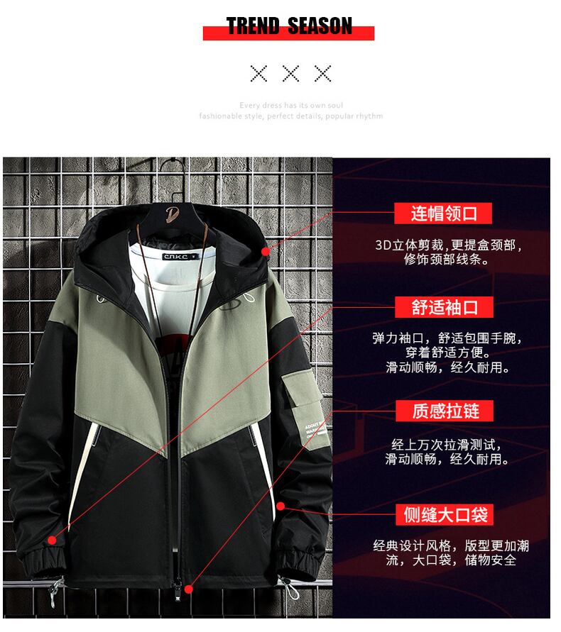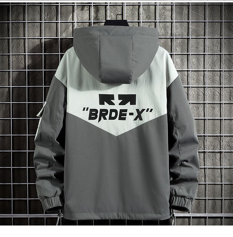Spring and autumn new jacket men's thin windbreaker hooded jacket tide brand contrast color winter tooling handsome jacket スプリング 春物 オータム 秋物 ウィンター 冬物 doushi30406367516