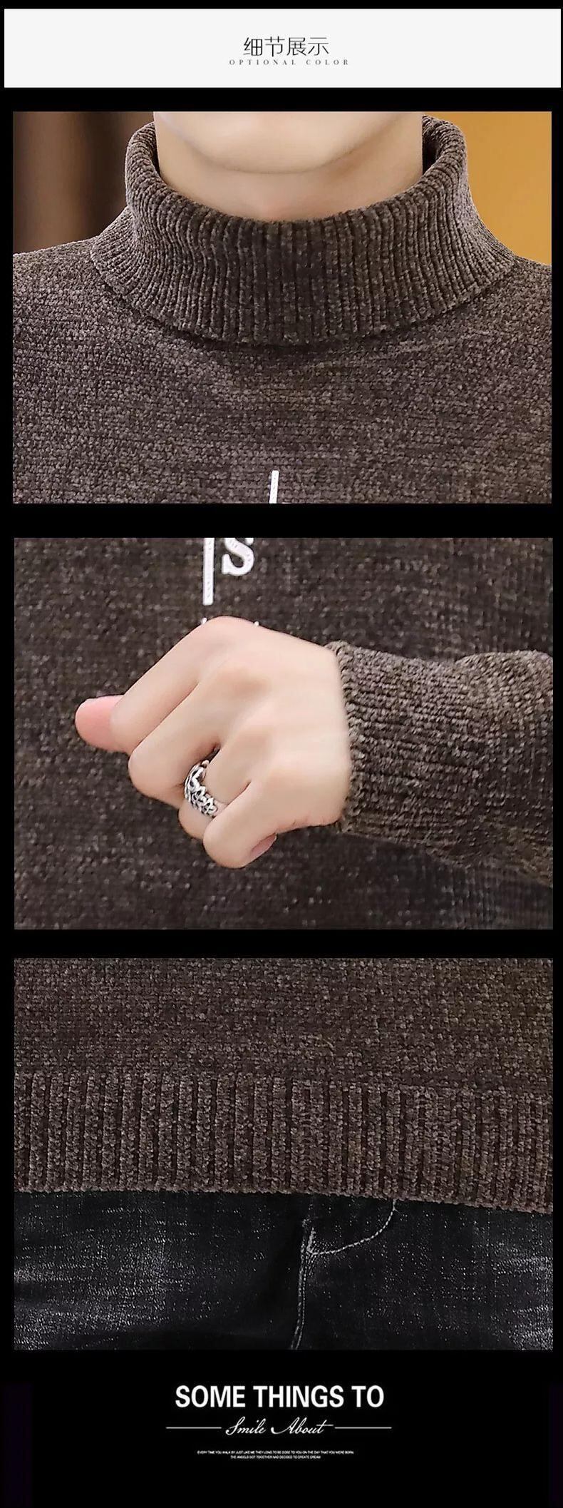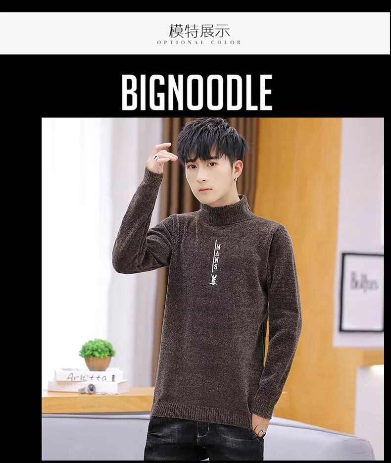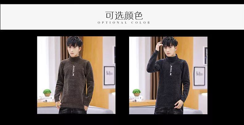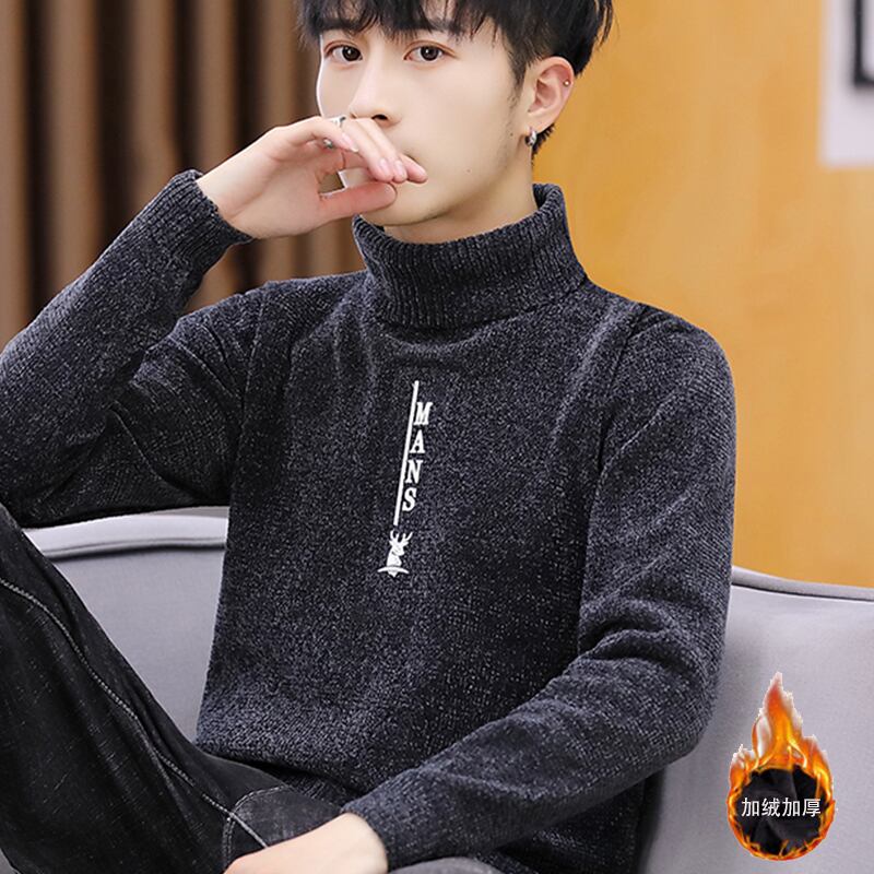Winter thickened fleece sweater men's version black chenille turtleneck bottoming shirt warm trend men's clothing line ブラック ウィンター 冬物 doushi31815147652