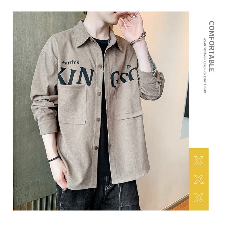 Corduroy long-sleeved shirt men's spring and autumn lapel workwear inch shirt men's jacket tide brand letter printing shirt ロング スプリング 春物 オータム 秋物 doushi64663144791