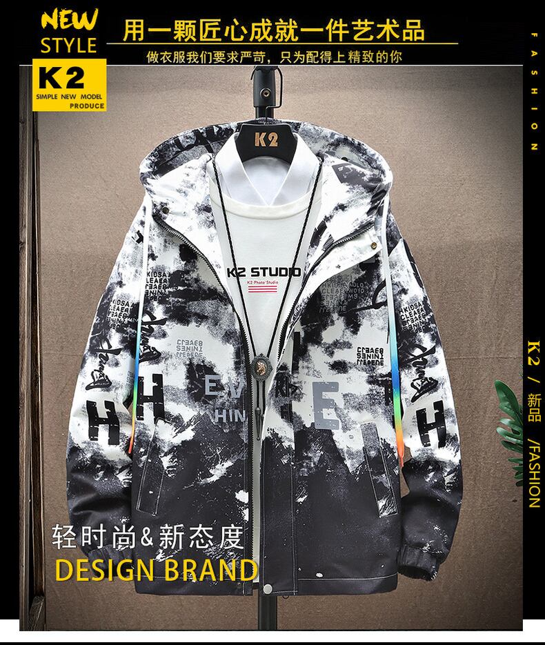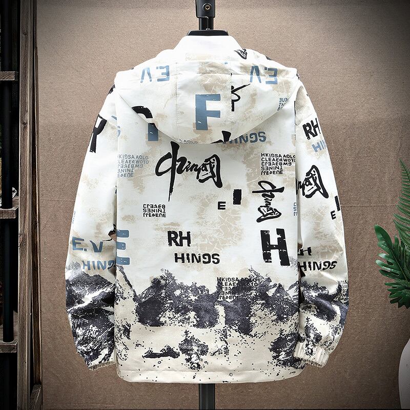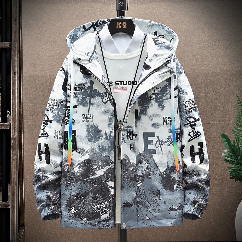 Jacket Men's Spring and Autumn Trendy Trend Gradient National Trend Workwear Tops Boys Printed Hooded Jacket プリント スプリング 春物 オータム 秋物 doushi48294385685