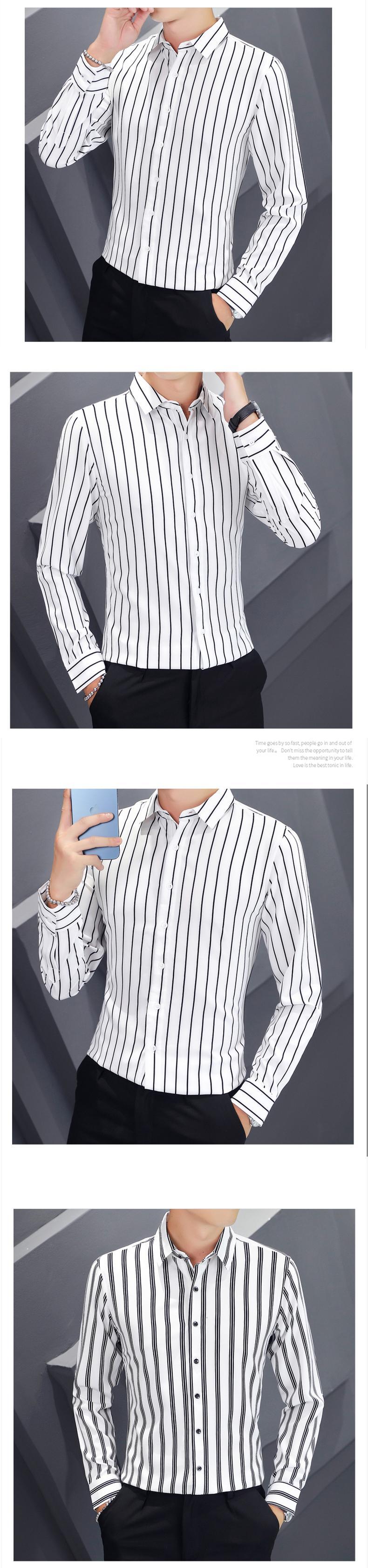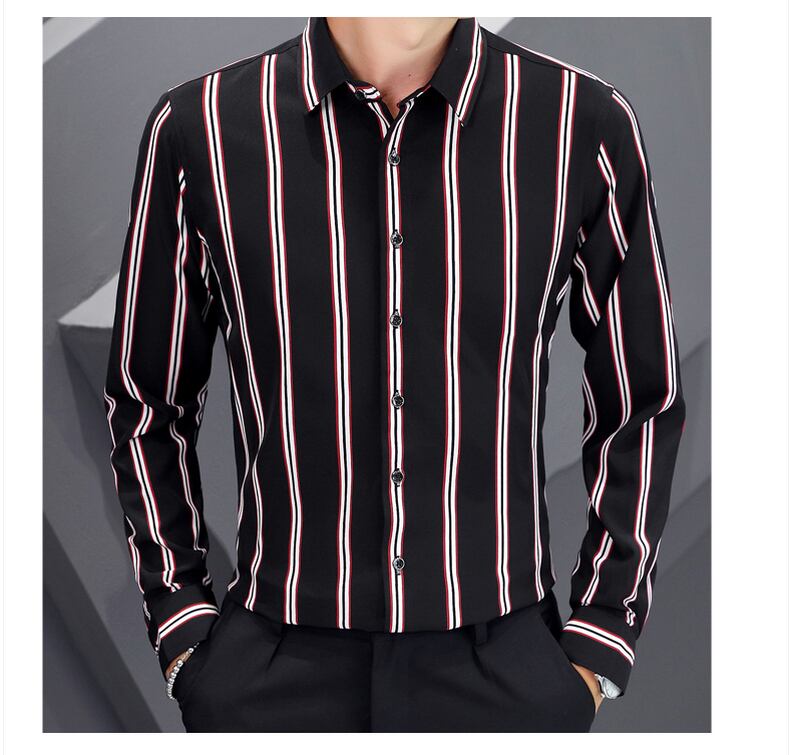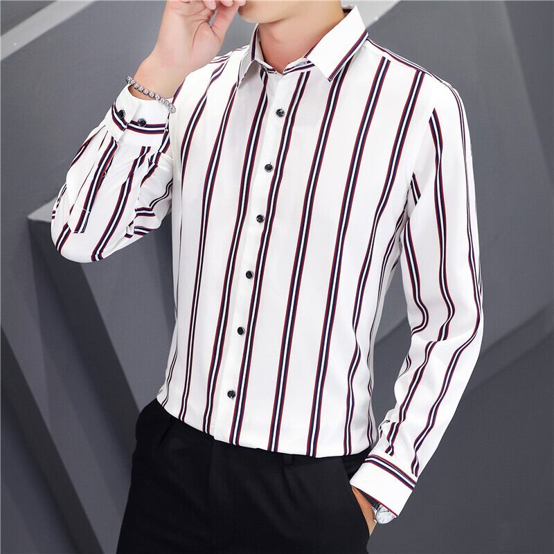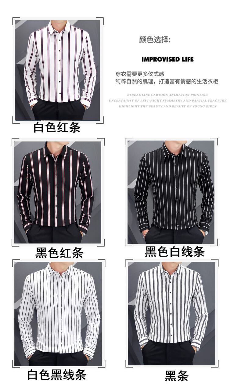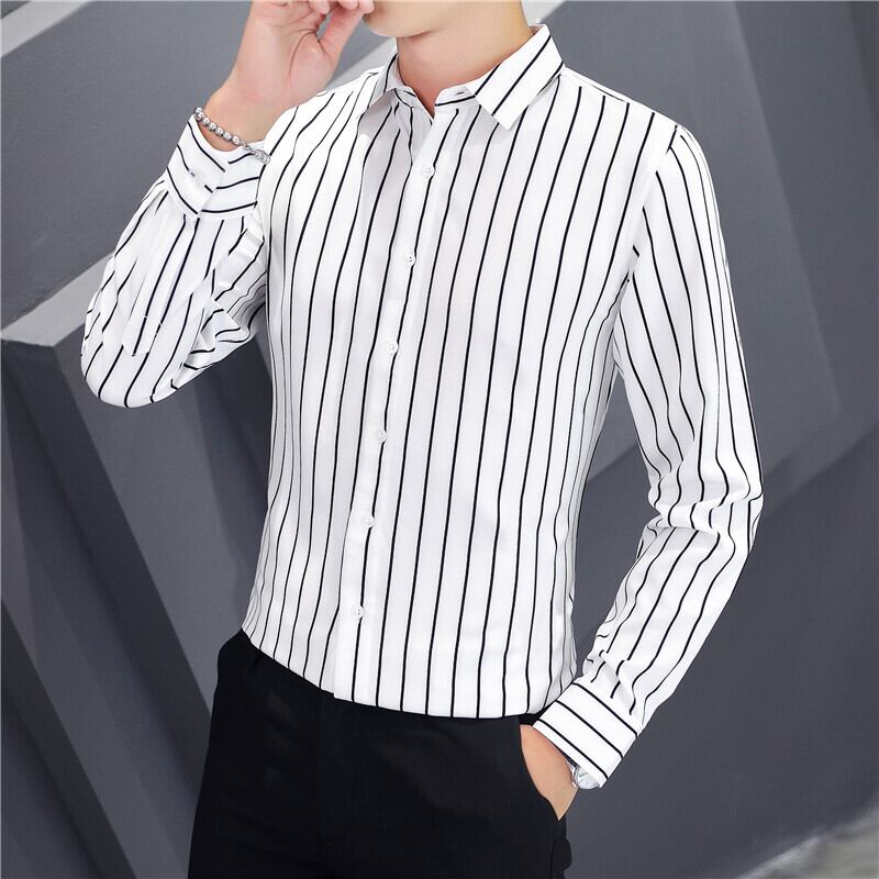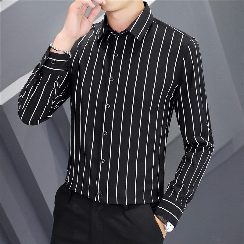 -end men's casual long-sleeved shirts spring and autumn version trend slim striped shirts tide brand spring tops thin ロング カジュアル シャツ スプリング 春物 オータム 秋物 ストライプ スリム doushi92679057567