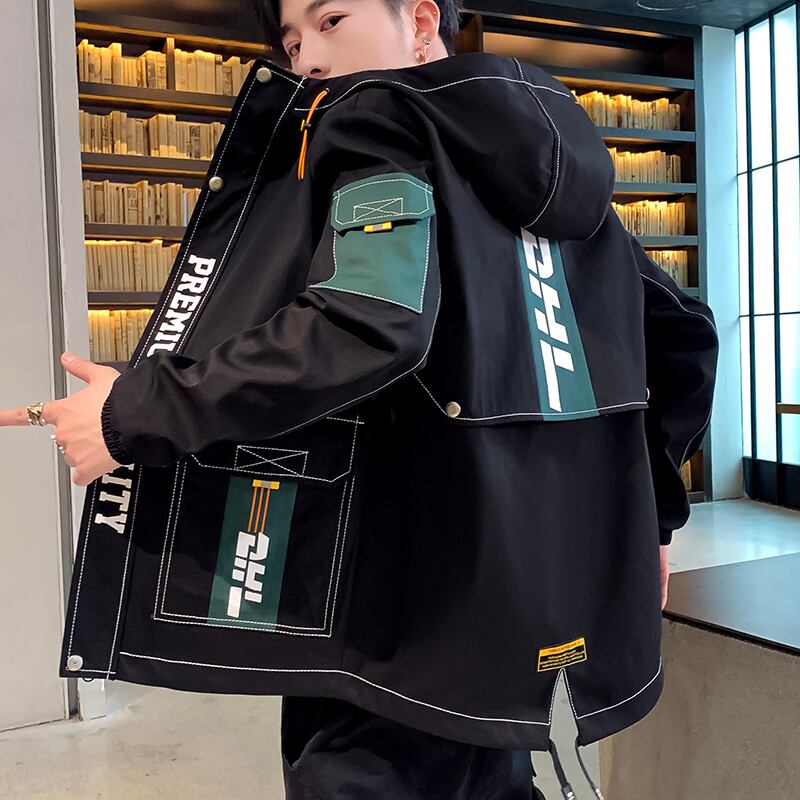 Men's mid-length 2022 new spring trend handsome spring and autumn loose tooling hooded jacket jacket men's jacket スプリング 春物 オータム 秋物 doushi466516214