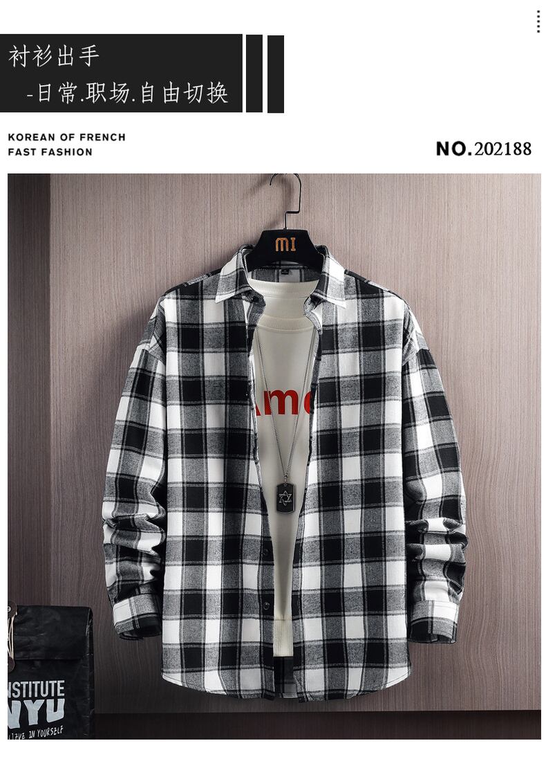 Plaid shirt men's autumn new all-match handsome casual jacket men's shirt version of the trend long-sleeved shirt ロング カジュアル オータム 秋物 doushi10579522426