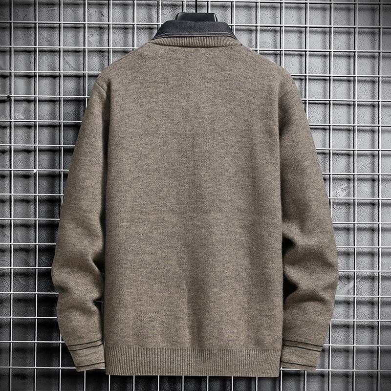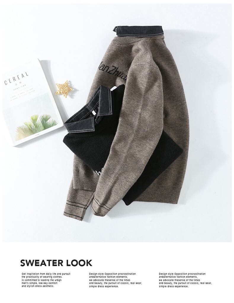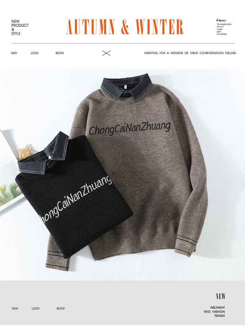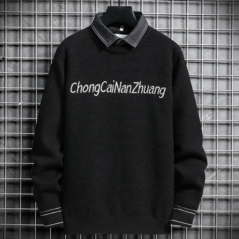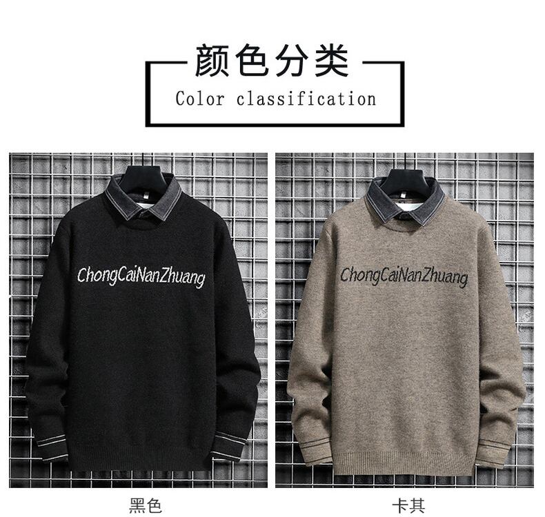 Fake two-piece sweater men's autumn and winter new trend jacquard knitted sweater men's version of the slim shirt collar bottoming shirt オータム 秋物 ウィンター 冬物 スリム doushi25605349091