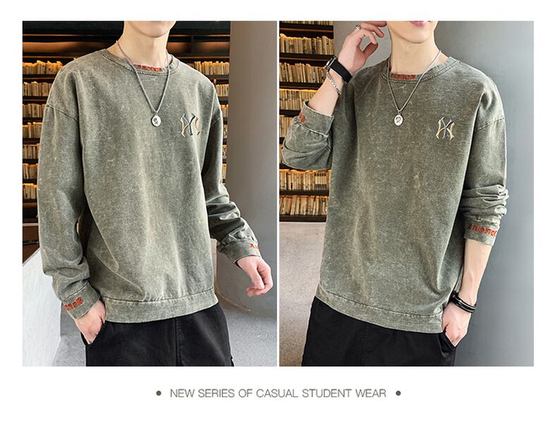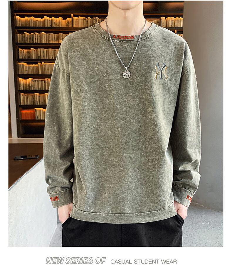 Denim long-sleeved t-shirt men's autumn loose 2022 new trendy brand retro sweater cotton top outer wear small shirt ロング コットン レトロ オータム 秋物 Tシャツ doushi86332207641
