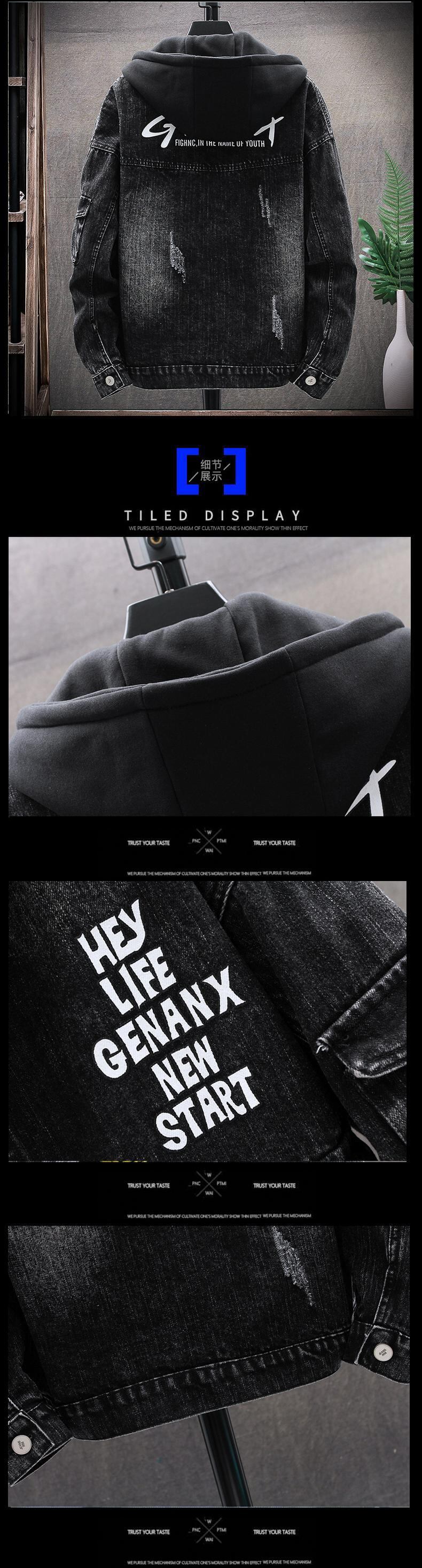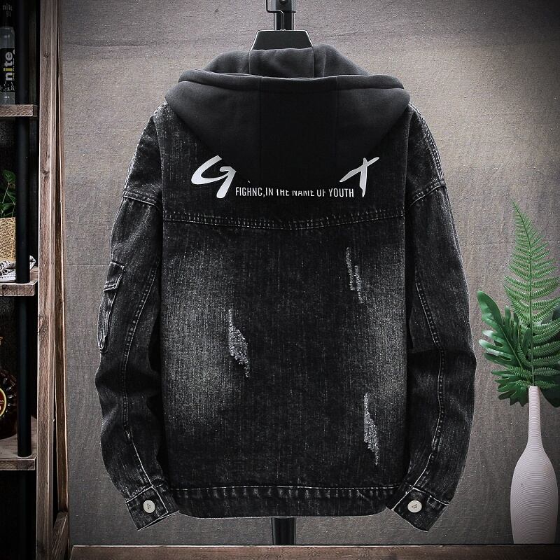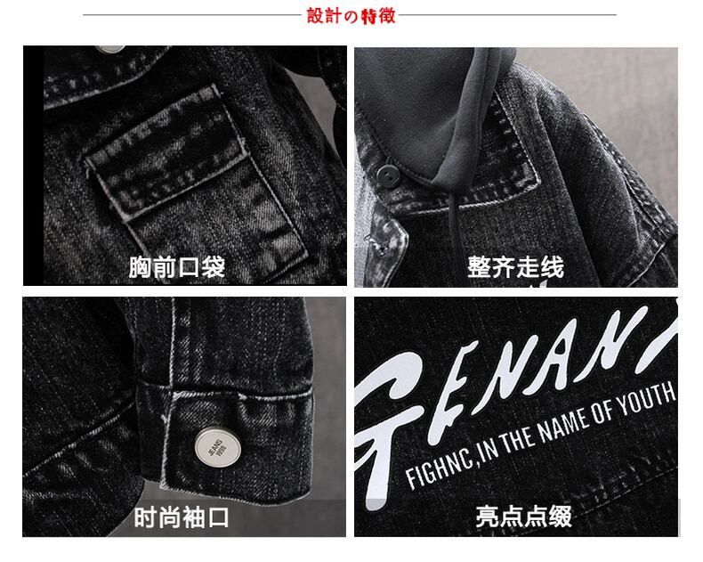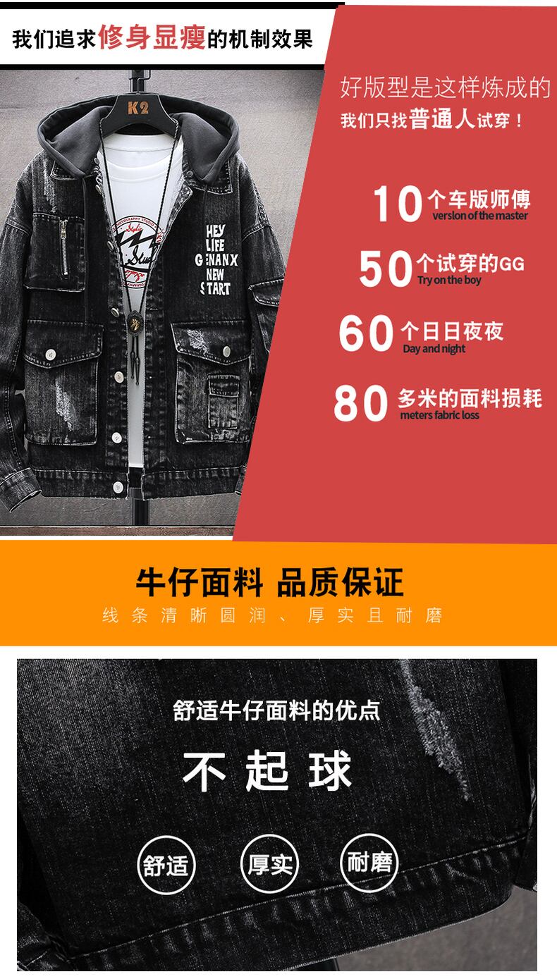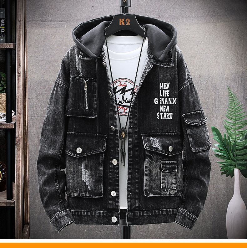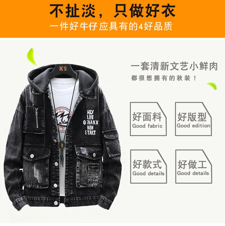 Denim jacket men's 2022 spring and autumn new version trend loose jacket black teenager hooded top ブラック スプリング 春物 オータム 秋物 doushi10037507760