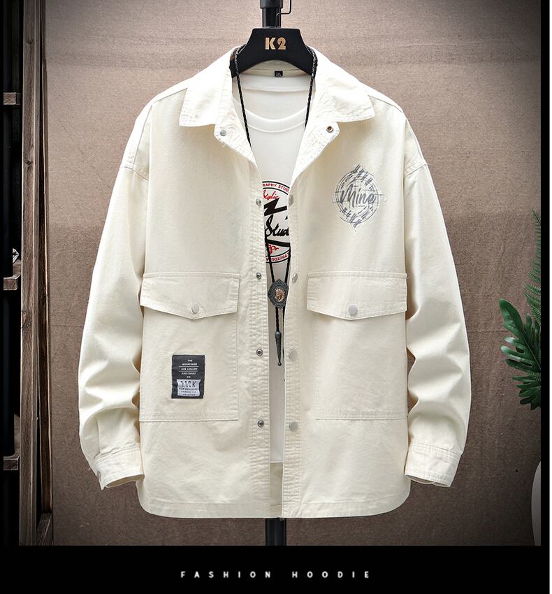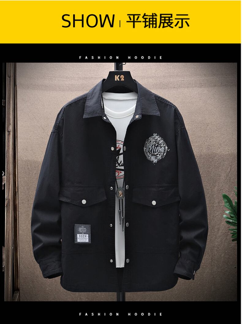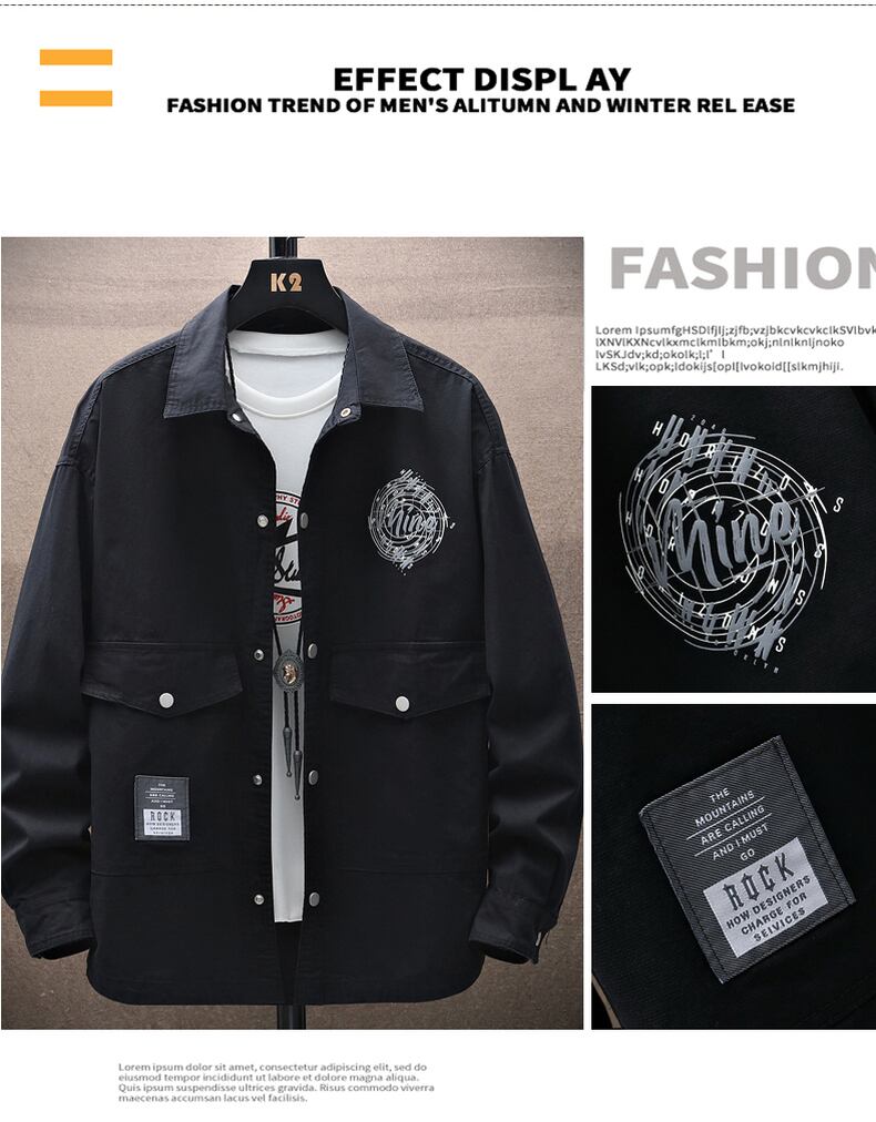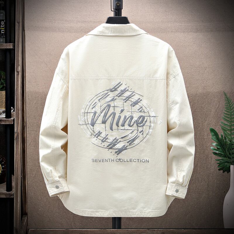 2022 autumn long-sleeved shirt men's tide brand Hong Kong style tooling print shirt youth student couple all-match coat ロング オータム 秋物 doushi95769634068