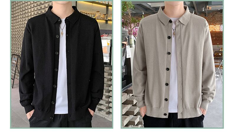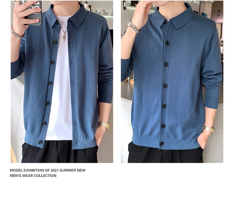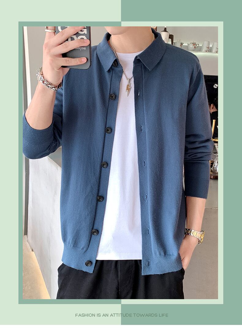 Knitwear Lapel Jacket Men's Spring and Autumn Thin Loose Trend Outerwear Sweater with Button Cardigan Men's カーディガン スプリング 春物 オータム 秋物 doushi96822741475