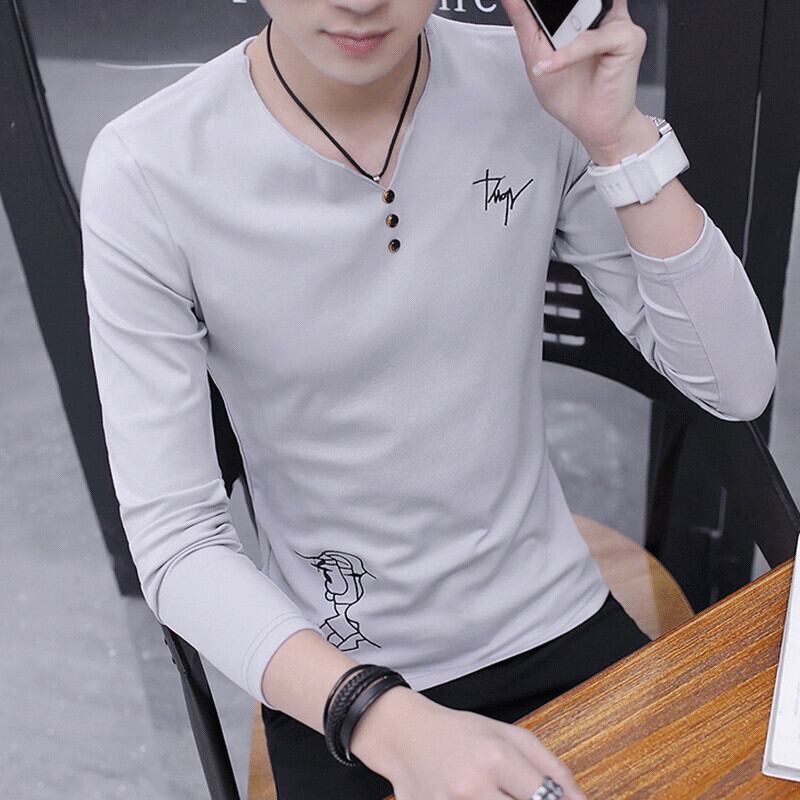 Long-sleeved t-shirt men's 2022 new version spring, autumn and winter trend tide brand casual V-neck sweetheart collar bottoming shirt top ロング カジュアル 大人ガーリー スウィート キュート スプリング 春物 オータム 秋物 ウィンター 冬物 Vネック Tシャツ doushi66085173136