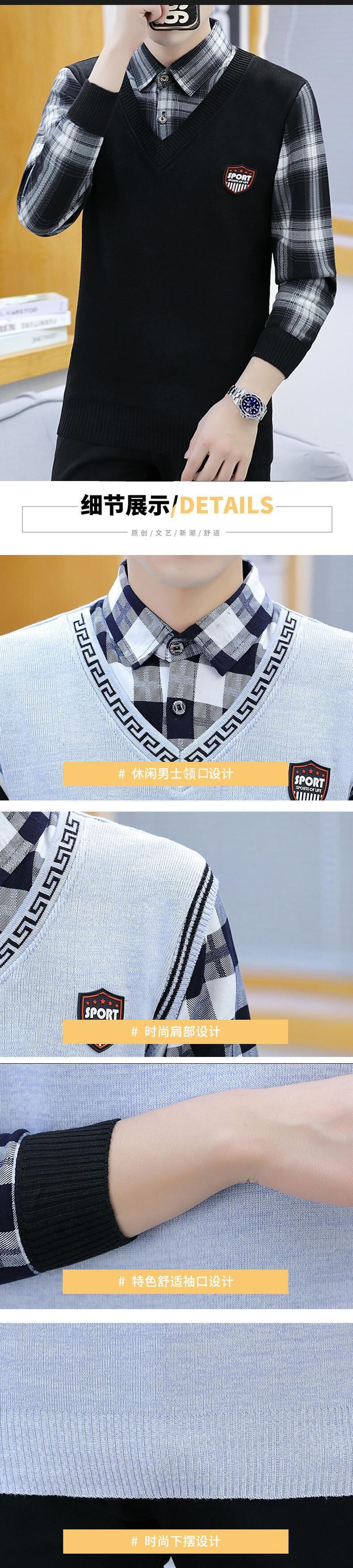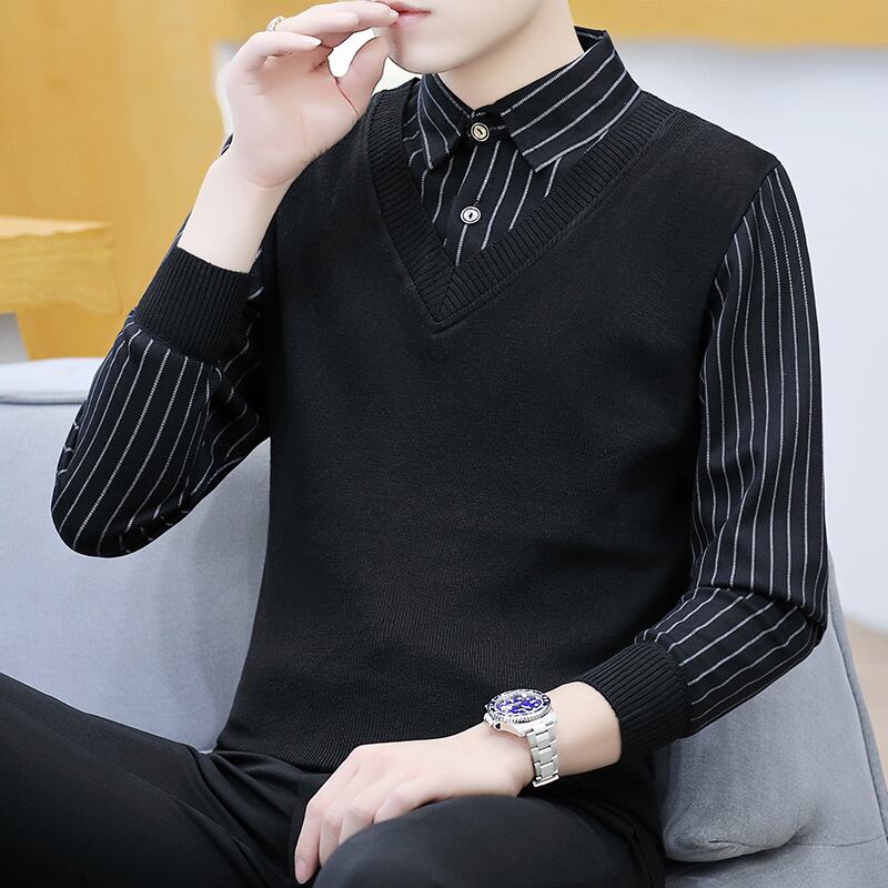 Sweater men's fake two-piece shirt collar sweater spring and autumn trend slim collar bottoming shirt autumn clothes スプリング 春物 オータム 秋物 スリム doushi7415107898