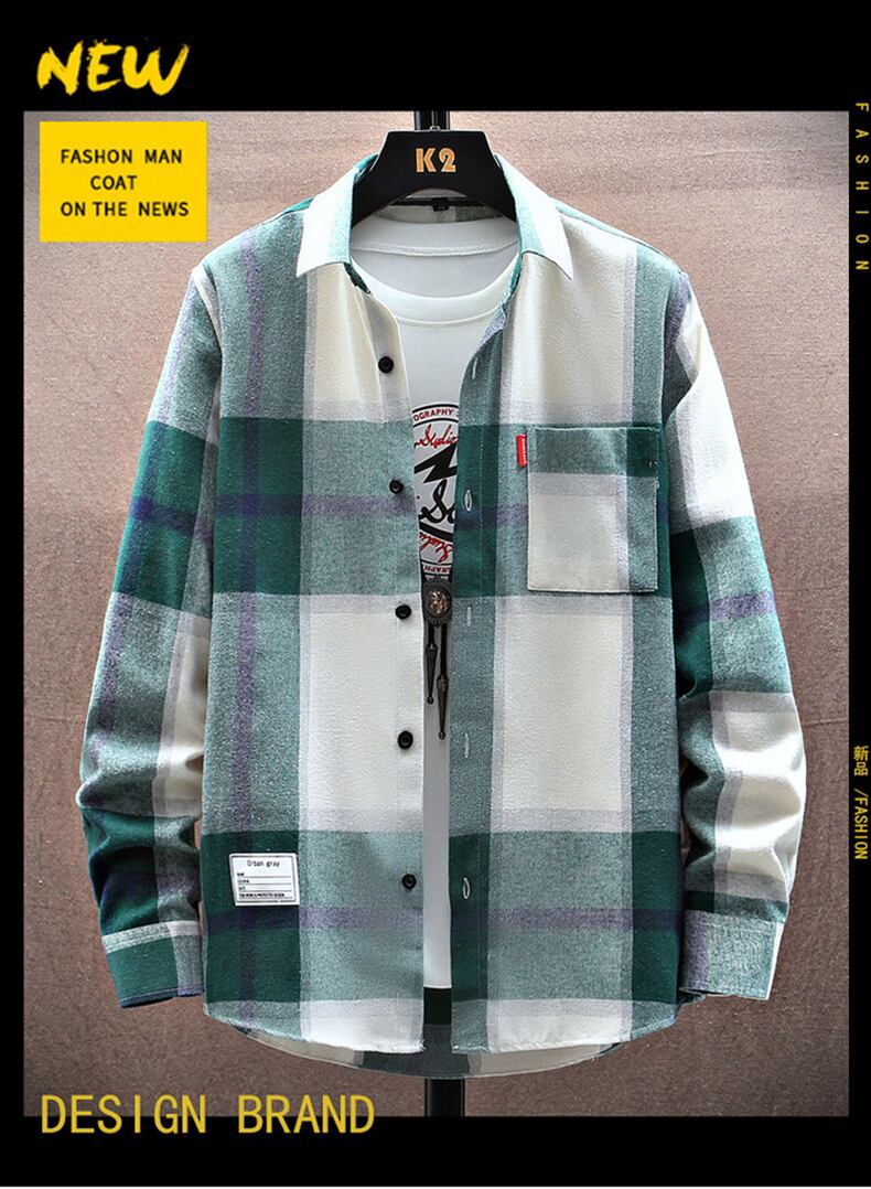 Plaid shirt men's autumn 2022 new casual loose shirt men's long-sleeved thin jacket youth trend inch shirt ロング カジュアル オータム 秋物 doushi18891982862