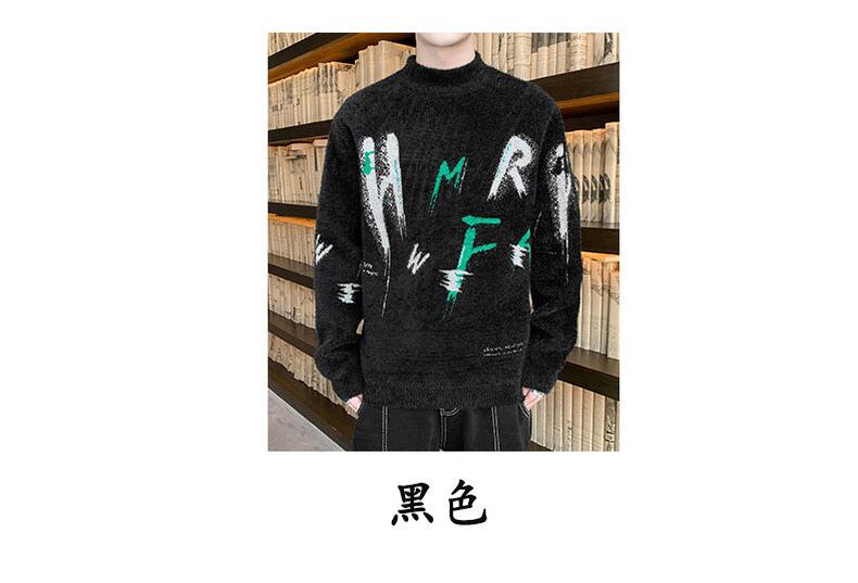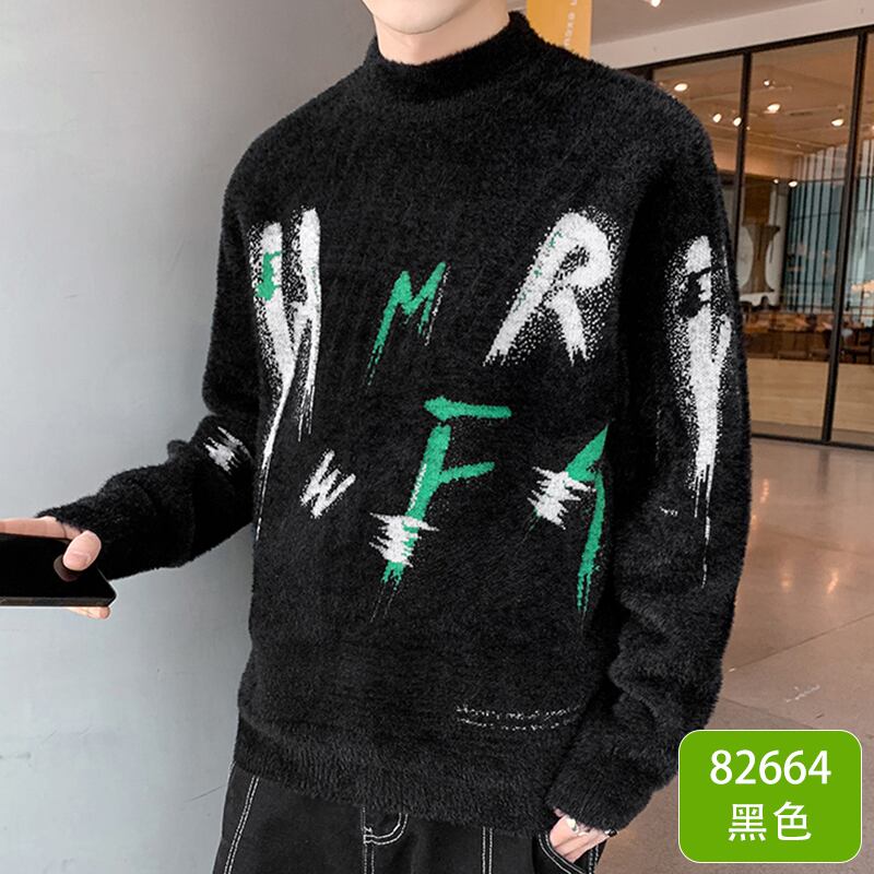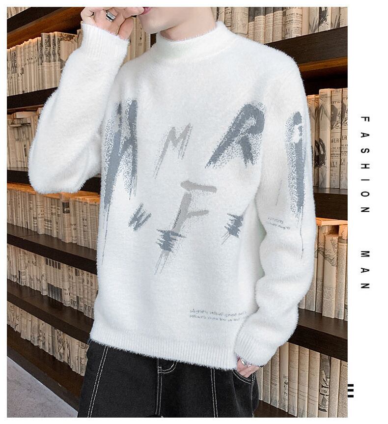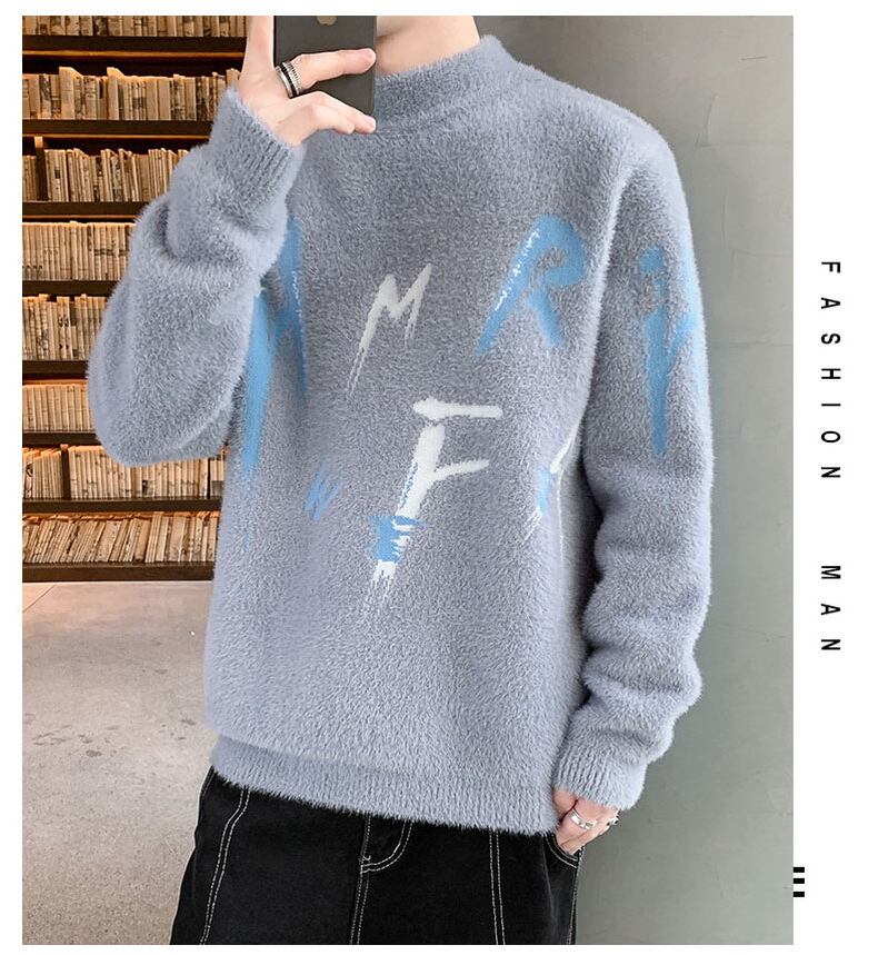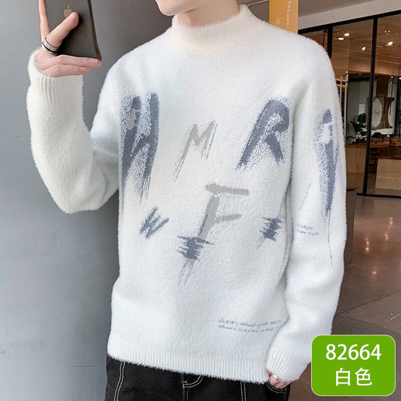Half turtleneck sweater men's autumn and winter thickening tide brand mink fleece sweater loose youth warm sweater オータム 秋物 ウィンター 冬物 doushi45821200027